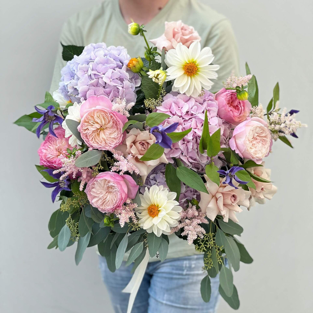 Квіти: Троянда піоновидна, Гортензія, Жоржина, Евкаліпт, Клематіс, Троянда, Астільба