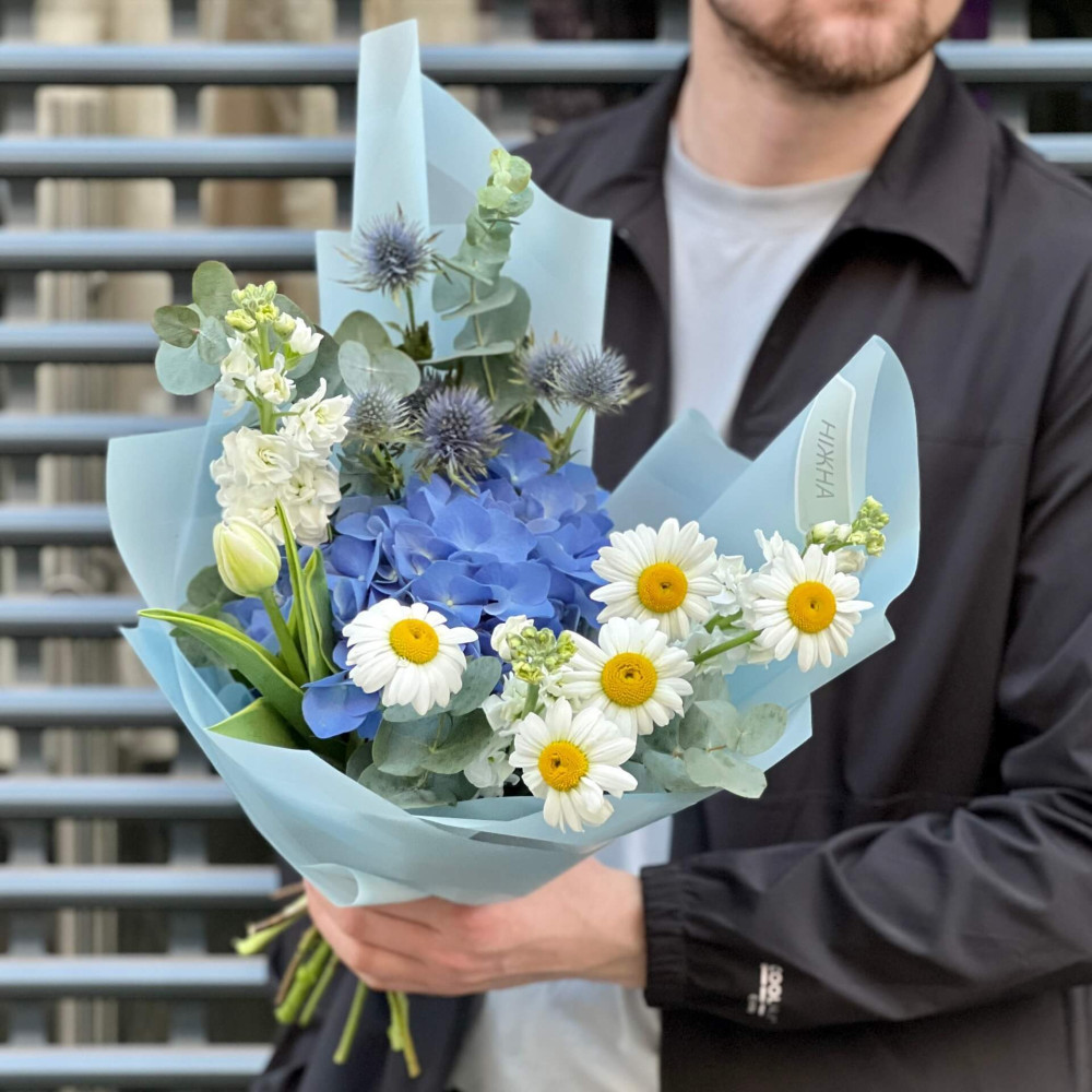 Квіти: Гортензія, Тюльпан, Ерінгіум, Танацетум, Матіола, Евкаліпт