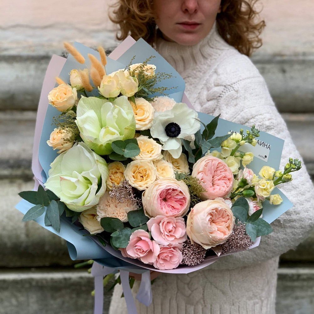 І це, до речі, зовсім не обов'язково плюси, це особливості, які потрібно розуміти. Тоді і вибір «де купити букет у Львові» зробити буде значно простіше.- Кожен букет Kvitna унікальний. Це означає, якщо Ви замовите у нас якийсь із букетів на сайті, то Ви не отримаєте точнісінько такий же. Деяких це бентежить, такі люди не хочуть «ризикувати», бажають «в точності, як на світлині». У «Квітна» кожен букет — це творчий пошук, це захоплення, злиття з квітами, образом одержувача і завданням. Так, ми можемо прийняти за вектор, зробити схожий букет, в тому ж стилі, кольоровій гамі, з тих самих квітів ... Але нам нудно робити за шаблоном. Адже букет, представлений на зображенні, робився для іншої людини, з іншого приводу, під інший настрій і натхнення. У Вас буде все по-іншому.