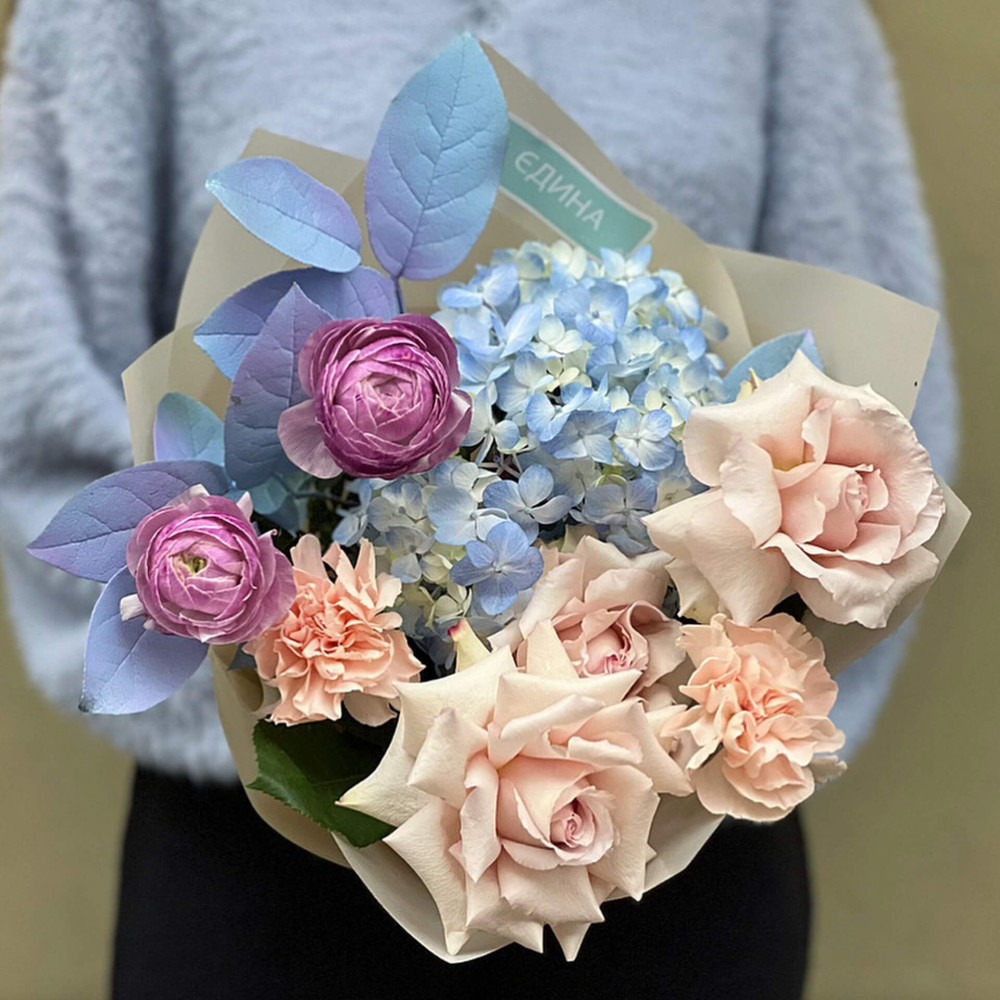 Квіти: Гортензія, Ранункулюс, Троянда, Салал, Діантус