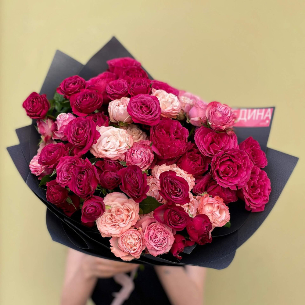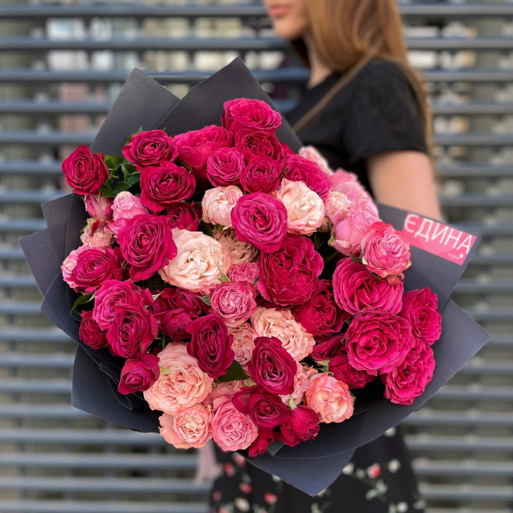 - Як замовити 17 гілок кущової піоновидної троянди у букеті «Ніжно-яскравий»? ❯