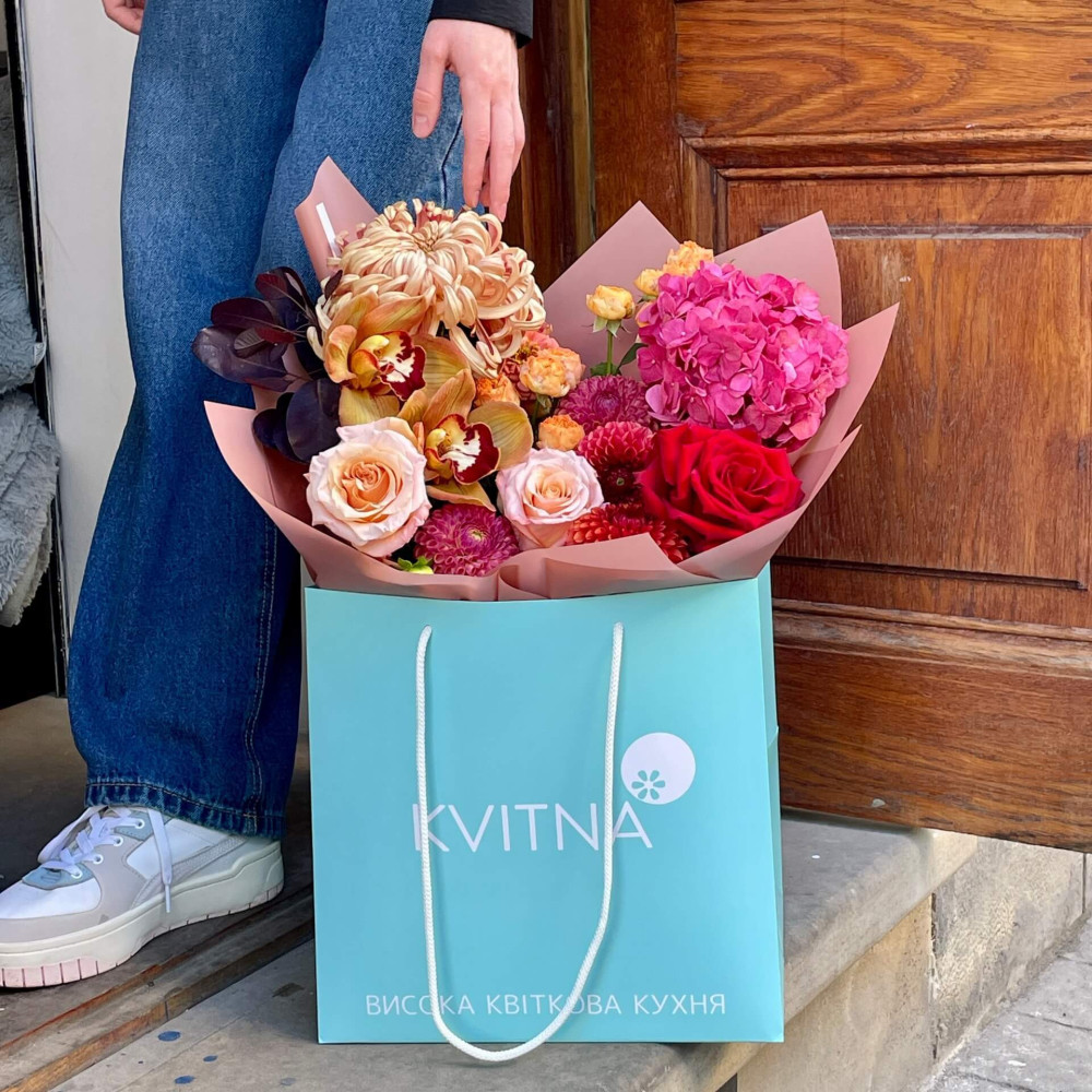 І це, до речі, зовсім не обов'язково плюси, це особливості, які потрібно розуміти. Тоді і вибір «де купити букет у Львові» зробити буде значно простіше.- Кожен букет Kvitna унікальний. Це означає, якщо Ви замовите у нас якийсь із букетів на сайті, то Ви не отримаєте точнісінько такий же. Деяких це бентежить, такі люди не хочуть «ризикувати», бажають «в точності, як на світлині». У «Квітна» кожен букет — це творчий пошук, це захоплення, злиття з квітами, образом одержувача і завданням. Так, ми можемо прийняти за вектор, зробити схожий букет, в тому ж стилі, кольоровій гамі, з тих самих квітів ... Але нам нудно робити за шаблоном. Адже букет, представлений на зображенні, робився для іншої людини, з іншого приводу, під інший настрій і натхнення. У Вас буде все по-іншому.