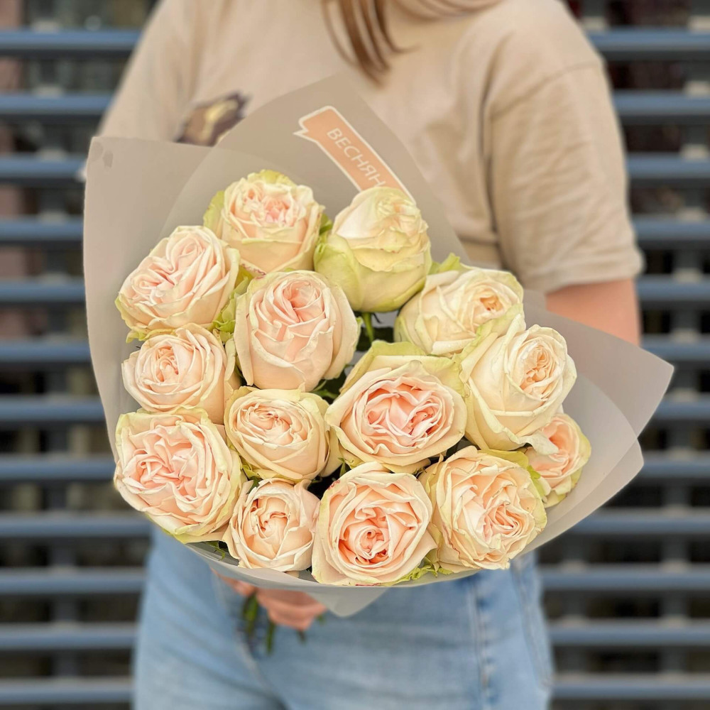 - Як замовити 15 піоновидних троянд Garden Spirit у букеті «Персикові кульки»? ❯