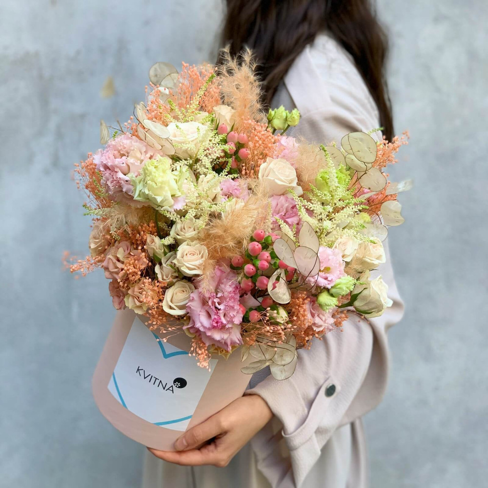 І це, до речі, зовсім не обов'язково плюси, це особливості, які потрібно розуміти. Тоді і вибір «де купити букет у Львові» зробити буде значно простіше.- Кожен букет Kvitna унікальний. Це означає, якщо Ви замовите у нас якийсь із букетів на сайті, то Ви не отримаєте точнісінько такий же. Деяких це бентежить, такі люди не хочуть «ризикувати», бажають «в точності, як на світлині». У «Квітна» кожен букет — це творчий пошук, це захоплення, злиття з квітами, образом одержувача і завданням. Так, ми можемо прийняти за вектор, зробити схожий букет, в тому ж стилі, кольоровій гамі, з тих самих квітів ... Але нам нудно робити за шаблоном. Адже букет, представлений на зображенні, робився для іншої людини, з іншого приводу, під інший настрій і натхнення. У Вас буде все по-іншому.