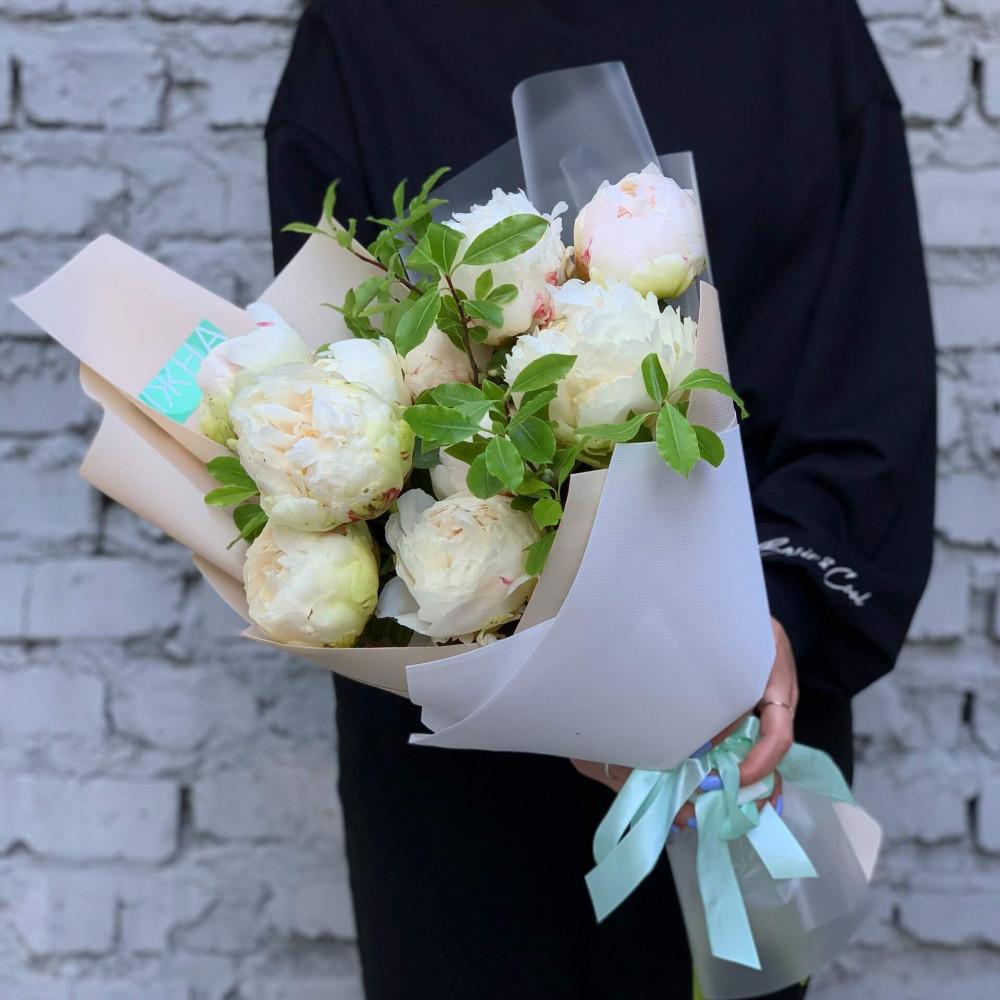 - Як замовити 11 півоній у букеті «Піоновий крем»? ❯