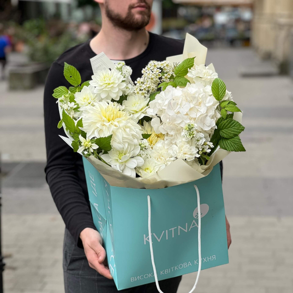 І це, до речі, зовсім не обов'язково плюси, це особливості, які потрібно розуміти. Тоді і вибір «де купити букет у Львові» зробити буде значно простіше.- Кожен букет Kvitna унікальний. Це означає, якщо Ви замовите у нас якийсь із букетів на сайті, то Ви не отримаєте точнісінько такий же. Деяких це бентежить, такі люди не хочуть «ризикувати», бажають «в точності, як на світлині». У «Квітна» кожен букет — це творчий пошук, це захоплення, злиття з квітами, образом одержувача і завданням. Так, ми можемо прийняти за вектор, зробити схожий букет, в тому ж стилі, кольоровій гамі, з тих самих квітів ... Але нам нудно робити за шаблоном. Адже букет, представлений на зображенні, робився для іншої людини, з іншого приводу, під інший настрій і натхнення. У Вас буде все по-іншому.