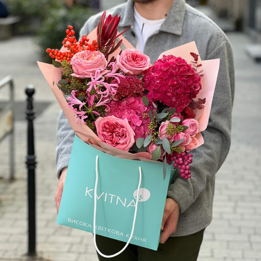 І це, до речі, зовсім не обов'язково плюси, це особливості, які потрібно розуміти. Тоді і вибір «де купити букет у Львові» зробити буде значно простіше.- Кожен букет Kvitna унікальний. Це означає, якщо Ви замовите у нас якийсь із букетів на сайті, то Ви не отримаєте точнісінько такий же. Деяких це бентежить, такі люди не хочуть «ризикувати», бажають «в точності, як на світлині». У «Квітна» кожен букет — це творчий пошук, це захоплення, злиття з квітами, образом одержувача і завданням. Так, ми можемо прийняти за вектор, зробити схожий букет, в тому ж стилі, кольоровій гамі, з тих самих квітів ... Але нам нудно робити за шаблоном. Адже букет, представлений на зображенні, робився для іншої людини, з іншого приводу, під інший настрій і натхнення. У Вас буде все по-іншому.