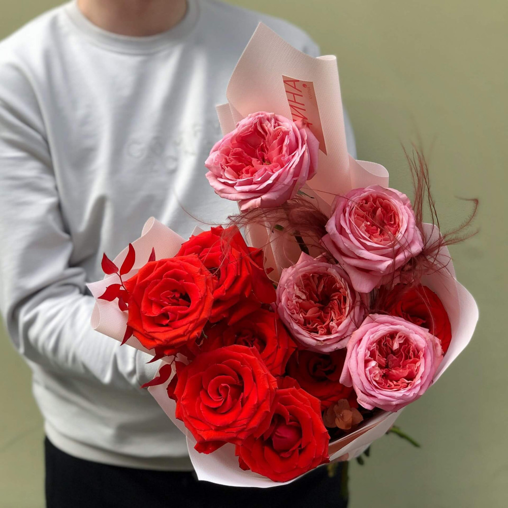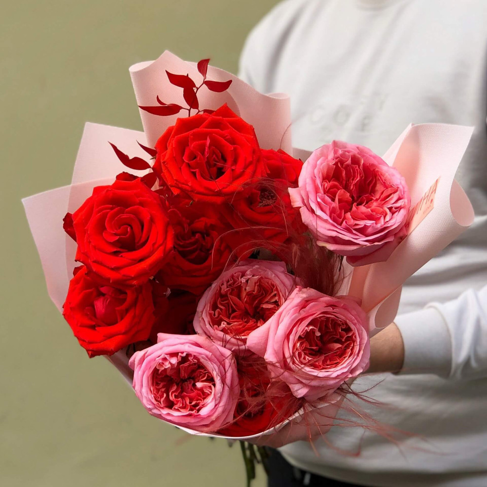 Коли рожеві та палко-червоні троянди поєднуються в одному букеті, це уособлення молодої красуні, що сповнена ніжності та жагучої пристрасті. Справжня молода кров!