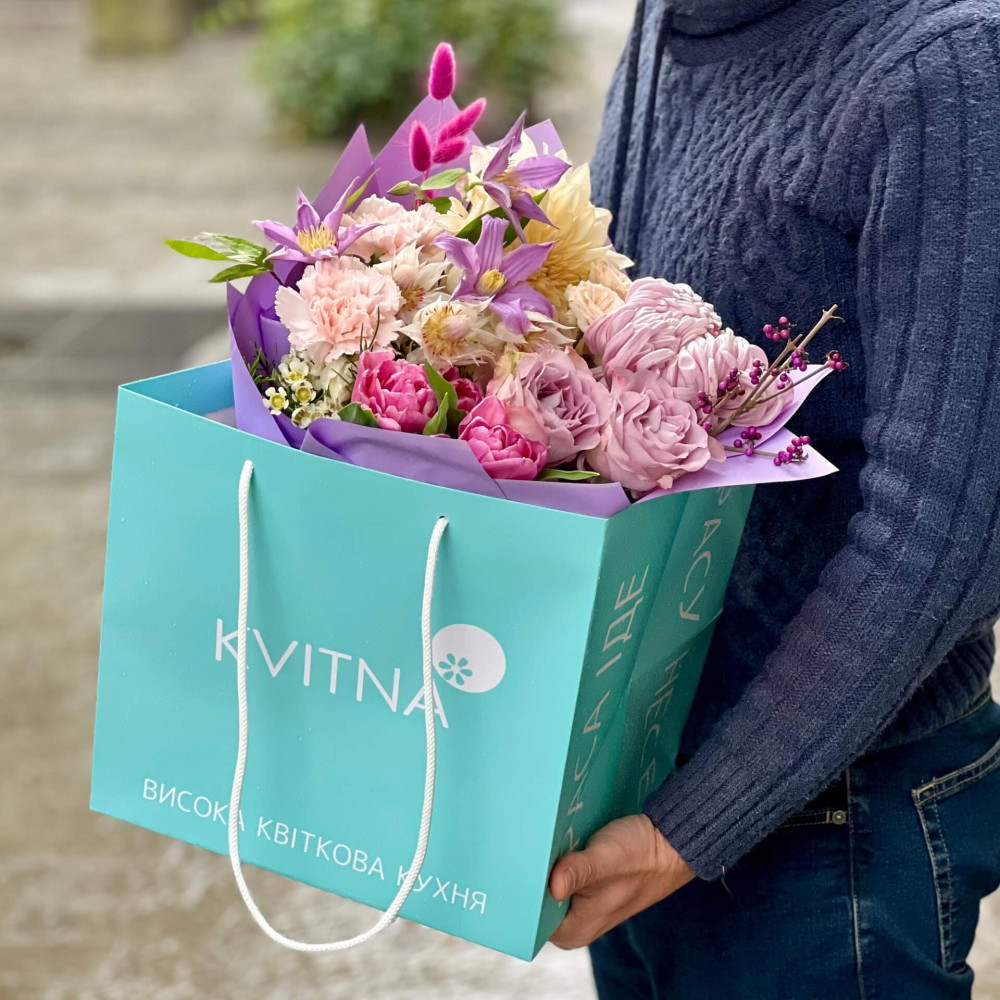 І це, до речі, зовсім не обов'язково плюси, це особливості, які потрібно розуміти. Тоді і вибір «де купити букет у Львові» зробити буде значно простіше.- Кожен букет Kvitna унікальний. Це означає, якщо Ви замовите у нас якийсь із букетів на сайті, то Ви не отримаєте точнісінько такий же. Деяких це бентежить, такі люди не хочуть «ризикувати», бажають «в точності, як на світлині». У «Квітна» кожен букет — це творчий пошук, це захоплення, злиття з квітами, образом одержувача і завданням. Так, ми можемо прийняти за вектор, зробити схожий букет, в тому ж стилі, кольоровій гамі, з тих самих квітів ... Але нам нудно робити за шаблоном. Адже букет, представлений на зображенні, робився для іншої людини, з іншого приводу, під інший настрій і натхнення. У Вас буде все по-іншому.