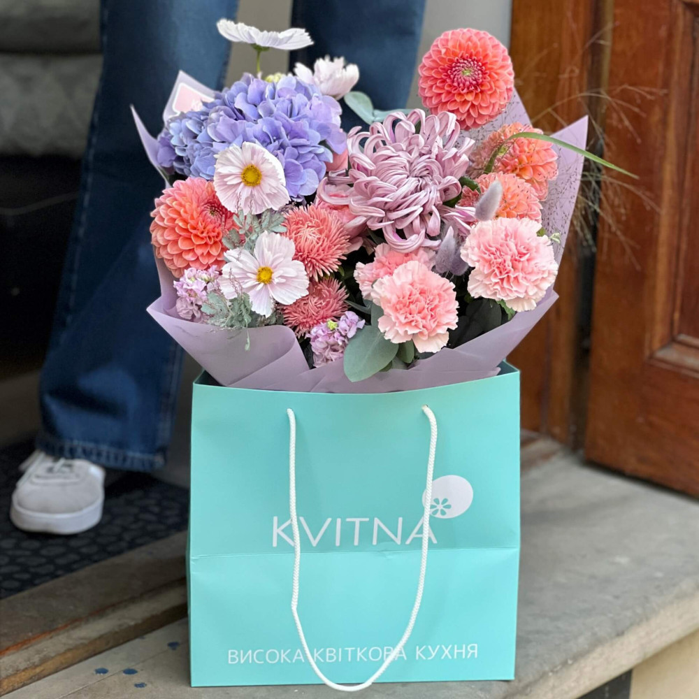 І це, до речі, зовсім не обов'язково плюси, це особливості, які потрібно розуміти. Тоді і вибір «де купити букет у Львові» зробити буде значно простіше.- Кожен букет Kvitna унікальний. Це означає, якщо Ви замовите у нас якийсь із букетів на сайті, то Ви не отримаєте точнісінько такий же. Деяких це бентежить, такі люди не хочуть «ризикувати», бажають «в точності, як на світлині». У «Квітна» кожен букет — це творчий пошук, це захоплення, злиття з квітами, образом одержувача і завданням. Так, ми можемо прийняти за вектор, зробити схожий букет, в тому ж стилі, кольоровій гамі, з тих самих квітів ... Але нам нудно робити за шаблоном. Адже букет, представлений на зображенні, робився для іншої людини, з іншого приводу, під інший настрій і натхнення. У Вас буде все по-іншому.