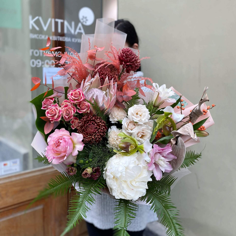 І це, до речі, зовсім не обов'язково плюси, це особливості, які потрібно розуміти. Тоді і вибір «де купити букет у Львові» зробити буде значно простіше.- Кожен букет Kvitna унікальний. Це означає, якщо Ви замовите у нас якийсь із букетів на сайті, то Ви не отримаєте точнісінько такий же. Деяких це бентежить, такі люди не хочуть «ризикувати», бажають «в точності, як на світлині». У «Квітна» кожен букет — це творчий пошук, це захоплення, злиття з квітами, образом одержувача і завданням. Так, ми можемо прийняти за вектор, зробити схожий букет, в тому ж стилі, кольоровій гамі, з тих самих квітів ... Але нам нудно робити за шаблоном. Адже букет, представлений на зображенні, робився для іншої людини, з іншого приводу, під інший настрій і натхнення. У Вас буде все по-іншому.