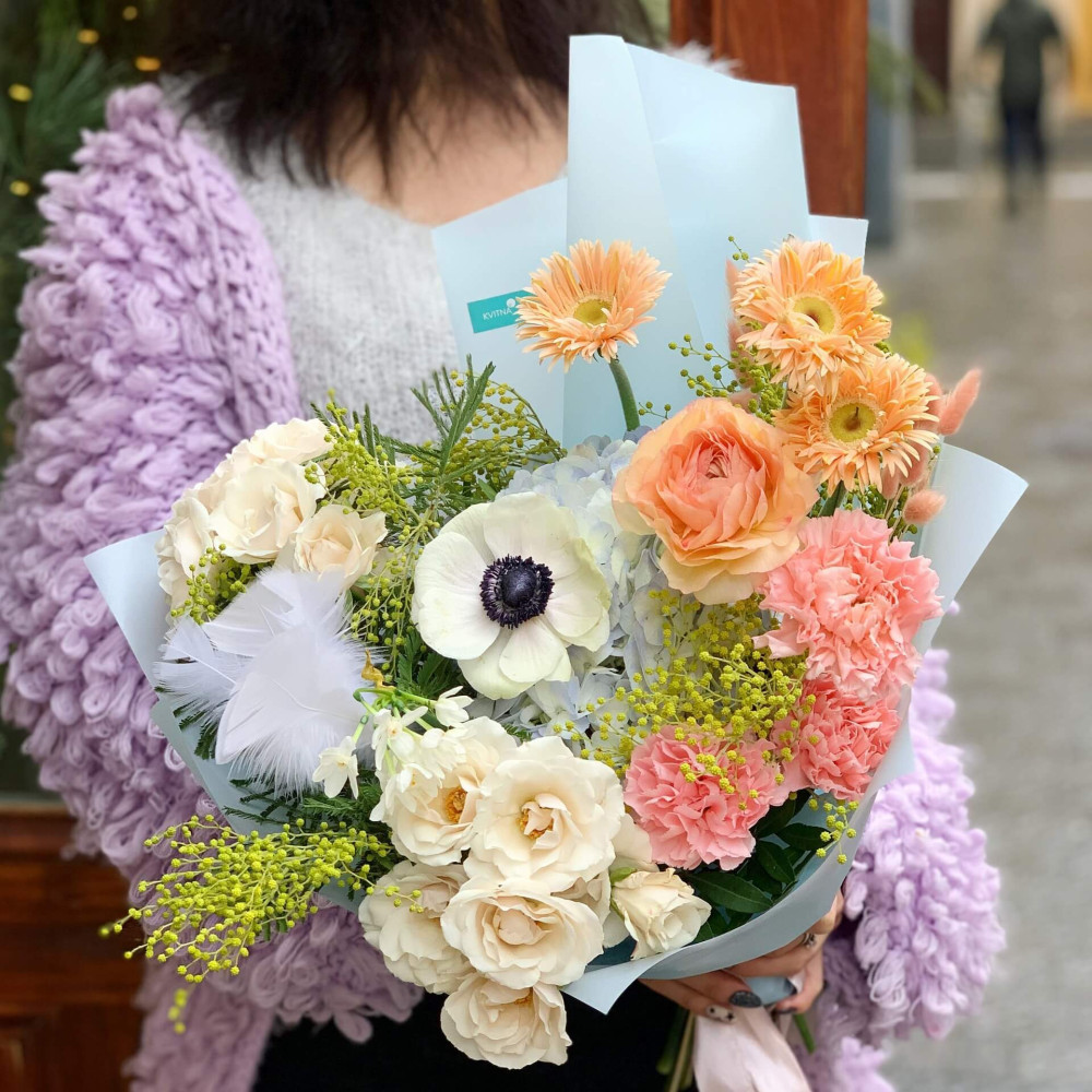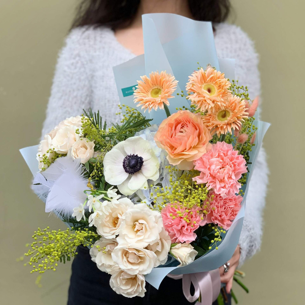Квіти: Ранункулюс, Анемон, Гербера, Мімоза, Гортензія, Діантус, Троянда кущова