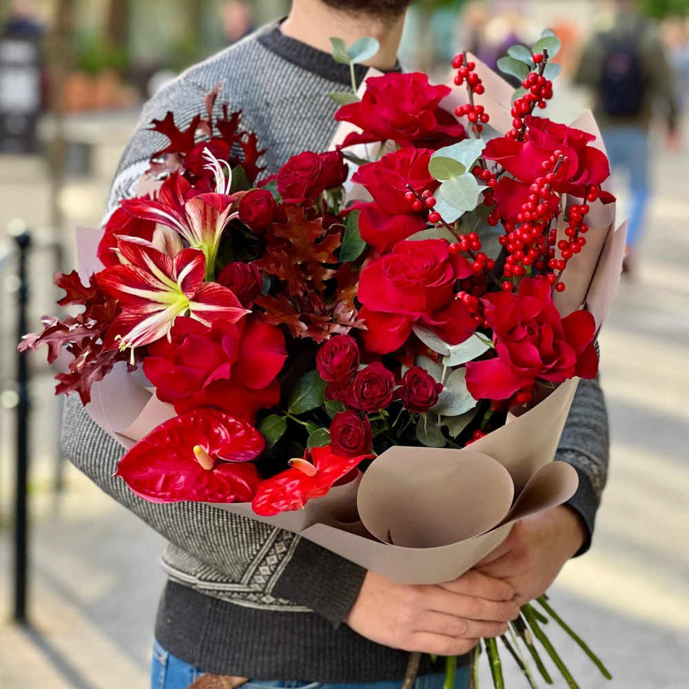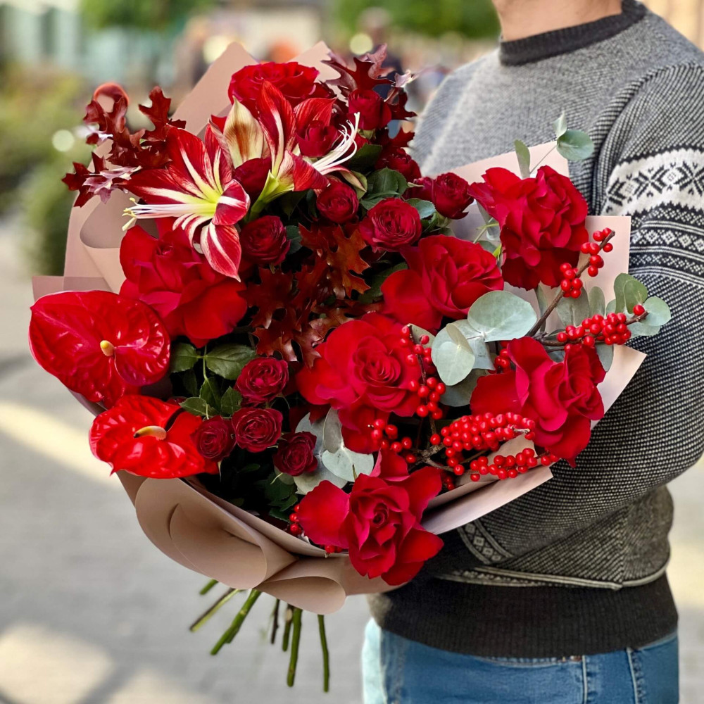 Квіти: Троянда, Антуріум, Евкаліпт, Гіпеаструм, Троянда кущова, Ілекс