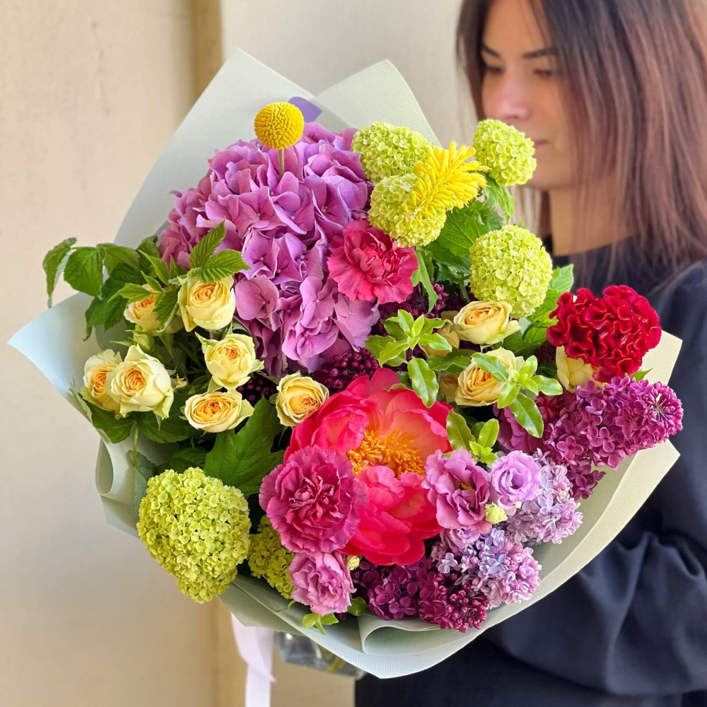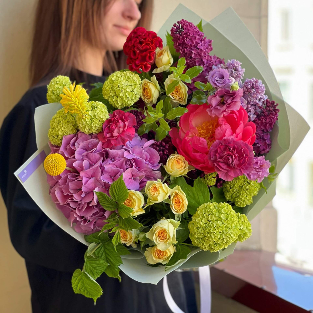 Квіти: Півонія, Бузок, Гортензія, Троянда кущова, Краспедія, Кніфофія, Вібурнум, Целозія, Діантус