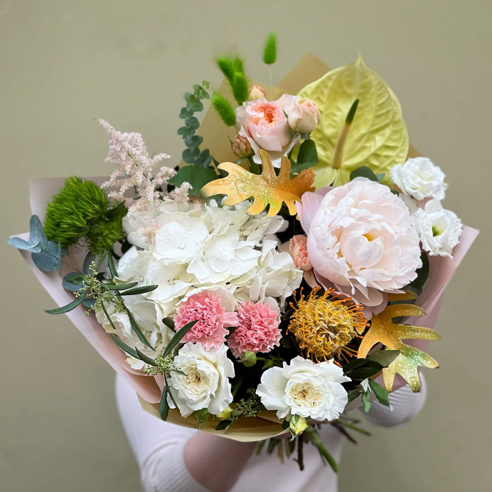 Квіти: Гортензія, Леукоспермум, Діантус, Еустома, Астільба, Півонія, Троянда піоновидна