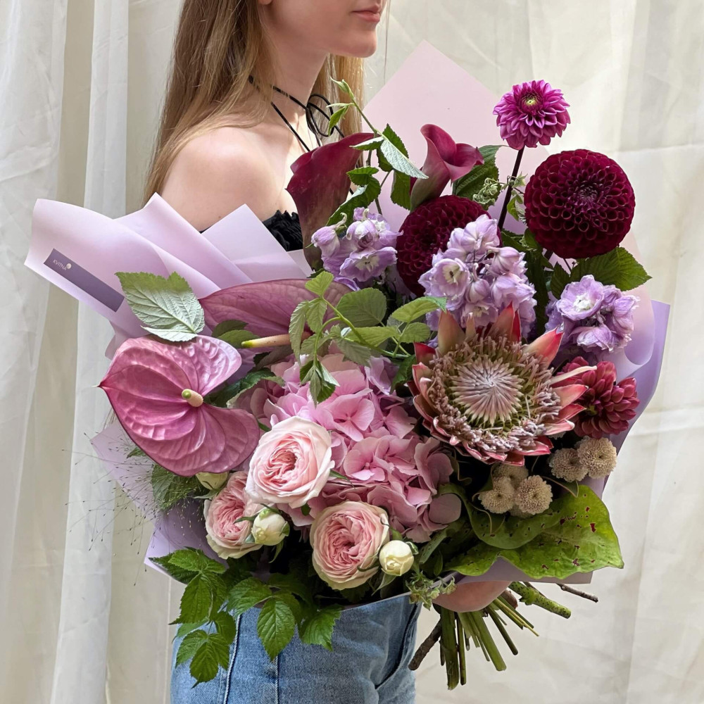 Розкіш, глибина та елегантність – так можна сказати як і про цей букет, так і про чудову людину, яка викликає в тебе захват та любов – Марія багатогранна, елегантна, розумна та з чудовим смаком. А букет – втілення її особистості в квітах.