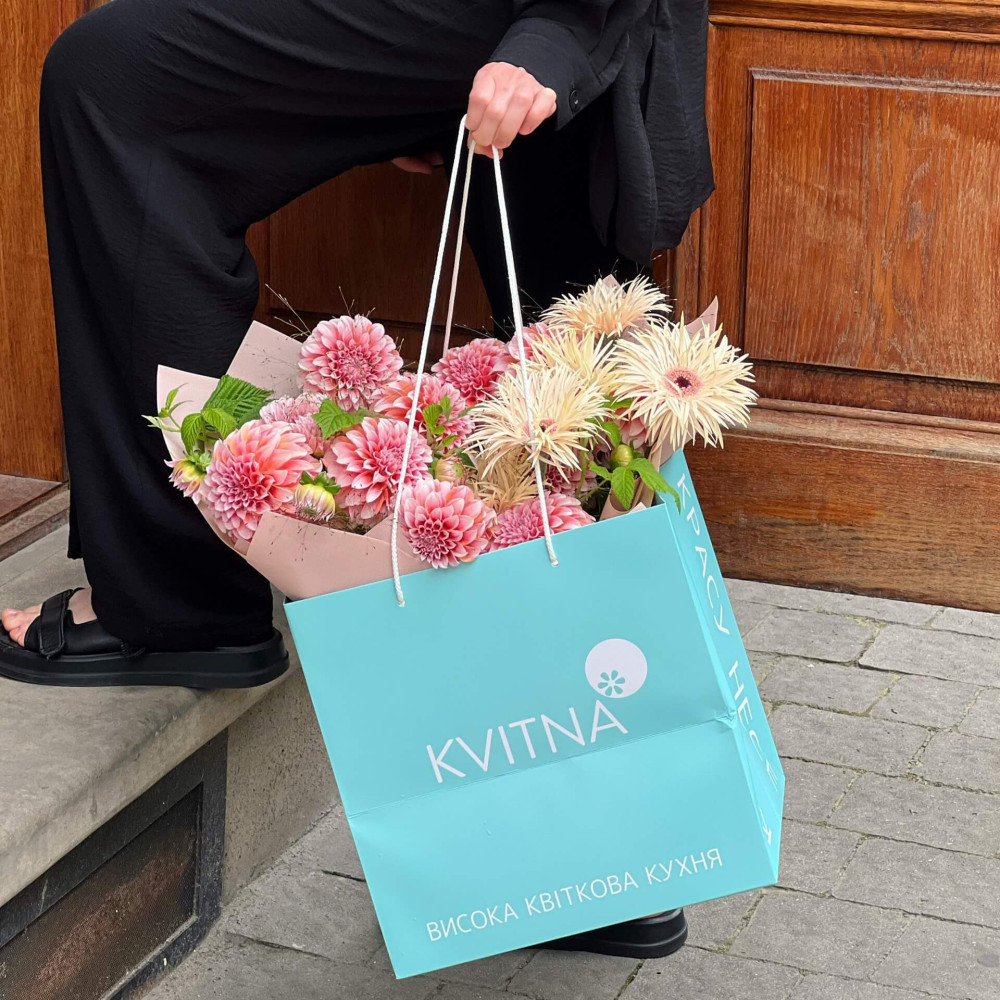 - Букети від Kvitna доставляються у фірмовому пакуванні, яке потрібно зняти при установці квітів у вазу. Не зрізайте стрічку, звʼязуючу букет, щоб зберегти його форму.