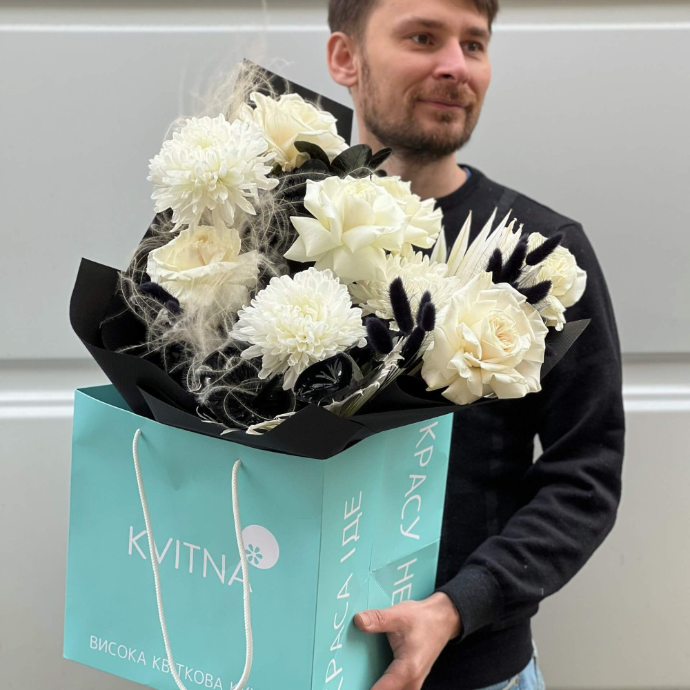 І це, до речі, зовсім не обов'язково плюси, це особливості, які потрібно розуміти. Тоді і вибір «де купити букет у Львові» зробити буде значно простіше.- Кожен букет Kvitna унікальний. Це означає, якщо Ви замовите у нас якийсь із букетів на сайті, то Ви не отримаєте точнісінько такий же. Деяких це бентежить, такі люди не хочуть «ризикувати», бажають «в точності, як на світлині». У «Квітна» кожен букет — це творчий пошук, це захоплення, злиття з квітами, образом одержувача і завданням. Так, ми можемо прийняти за вектор, зробити схожий букет, в тому ж стилі, кольоровій гамі, з тих самих квітів ... Але нам нудно робити за шаблоном. Адже букет, представлений на зображенні, робився для іншої людини, з іншого приводу, під інший настрій і натхнення. У Вас буде все по-іншому.