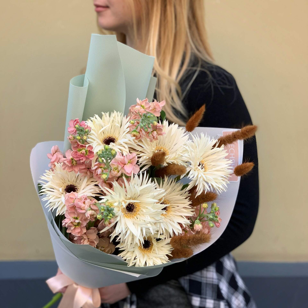 Квіти: Гербера, Матіола, Лагурус