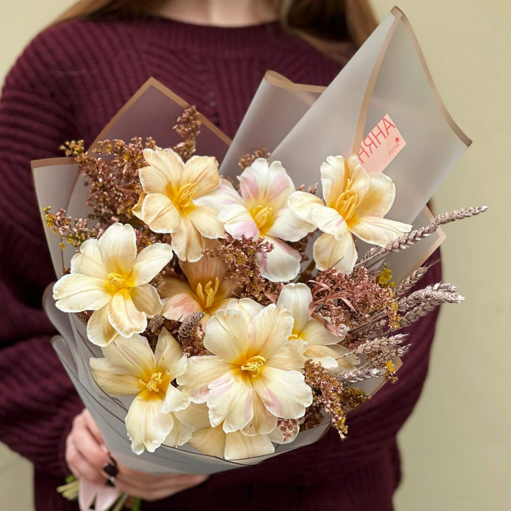 І це, до речі, зовсім не обов'язково плюси, це особливості, які потрібно розуміти. Тоді і вибір «де купити букет у Львові» зробити буде значно простіше.- Кожен букет Kvitna унікальний. Це означає, якщо Ви замовите у нас якийсь із букетів на сайті, то Ви не отримаєте точнісінько такий же. Деяких це бентежить, такі люди не хочуть «ризикувати», бажають «в точності, як на світлині». У «Квітна» кожен букет — це творчий пошук, це захоплення, злиття з квітами, образом одержувача і завданням. Так, ми можемо прийняти за вектор, зробити схожий букет, в тому ж стилі, кольоровій гамі, з тих самих квітів ... Але нам нудно робити за шаблоном. Адже букет, представлений на зображенні, робився для іншої людини, з іншого приводу, під інший настрій і натхнення. У Вас буде все по-іншому.