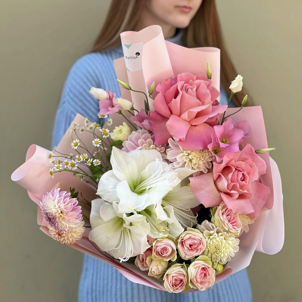 І це, до речі, зовсім не обов'язково плюси, це особливості, які потрібно розуміти. Тоді і вибір «де купити букет у Львові» зробити буде значно простіше.- Кожен букет Kvitna унікальний. Це означає, якщо Ви замовите у нас якийсь із букетів на сайті, то Ви не отримаєте точнісінько такий же. Деяких це бентежить, такі люди не хочуть «ризикувати», бажають «в точності, як на світлині». У «Квітна» кожен букет — це творчий пошук, це захоплення, злиття з квітами, образом одержувача і завданням. Так, ми можемо прийняти за вектор, зробити схожий букет, в тому ж стилі, кольоровій гамі, з тих самих квітів ... Але нам нудно робити за шаблоном. Адже букет, представлений на зображенні, робився для іншої людини, з іншого приводу, під інший настрій і натхнення. У Вас буде все по-іншому.