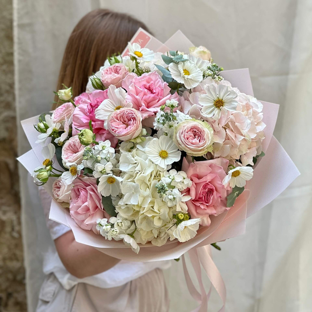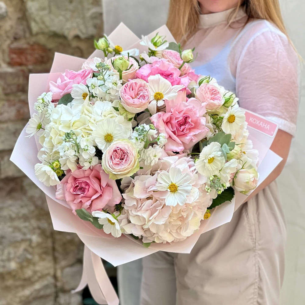 Квіти: Троянда піоновидна, Гортензія, Космея, Матіола