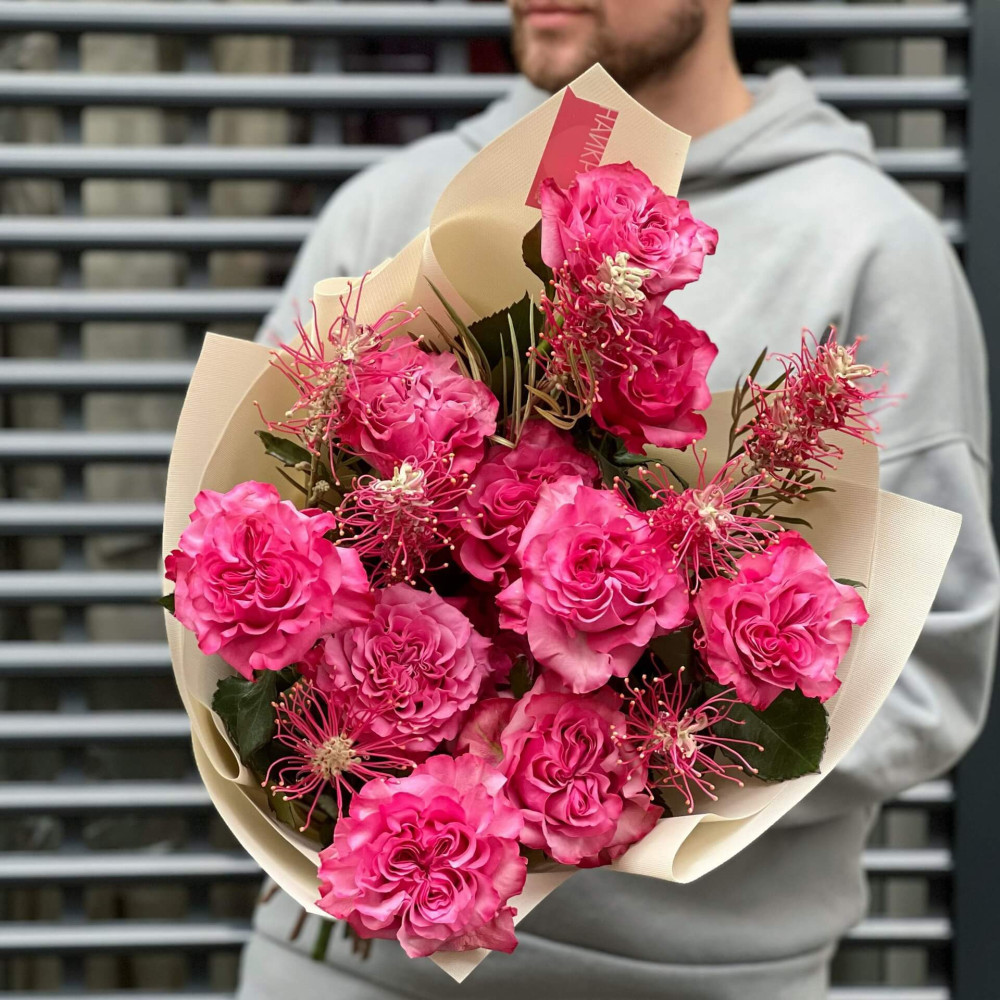 Квіти: Троянда піоновидна, Гревілея