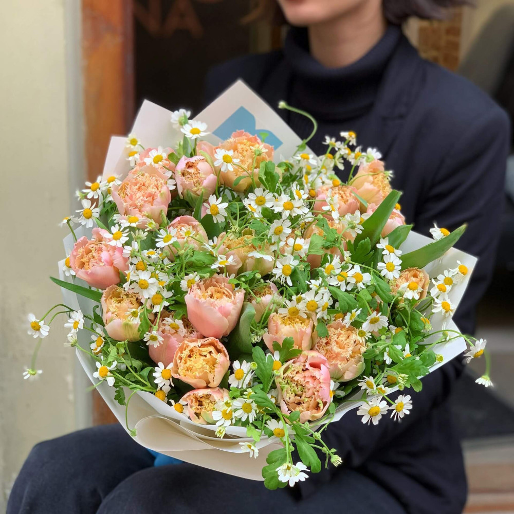 Квіти: Тюльпан піоновидний, Танацетум