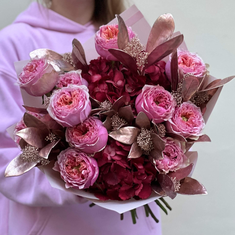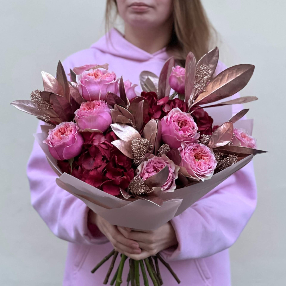 - Як замовити Букет у соковитих відтінках зі скімією бронзового кольору «Вишукана Ганна»? ❯