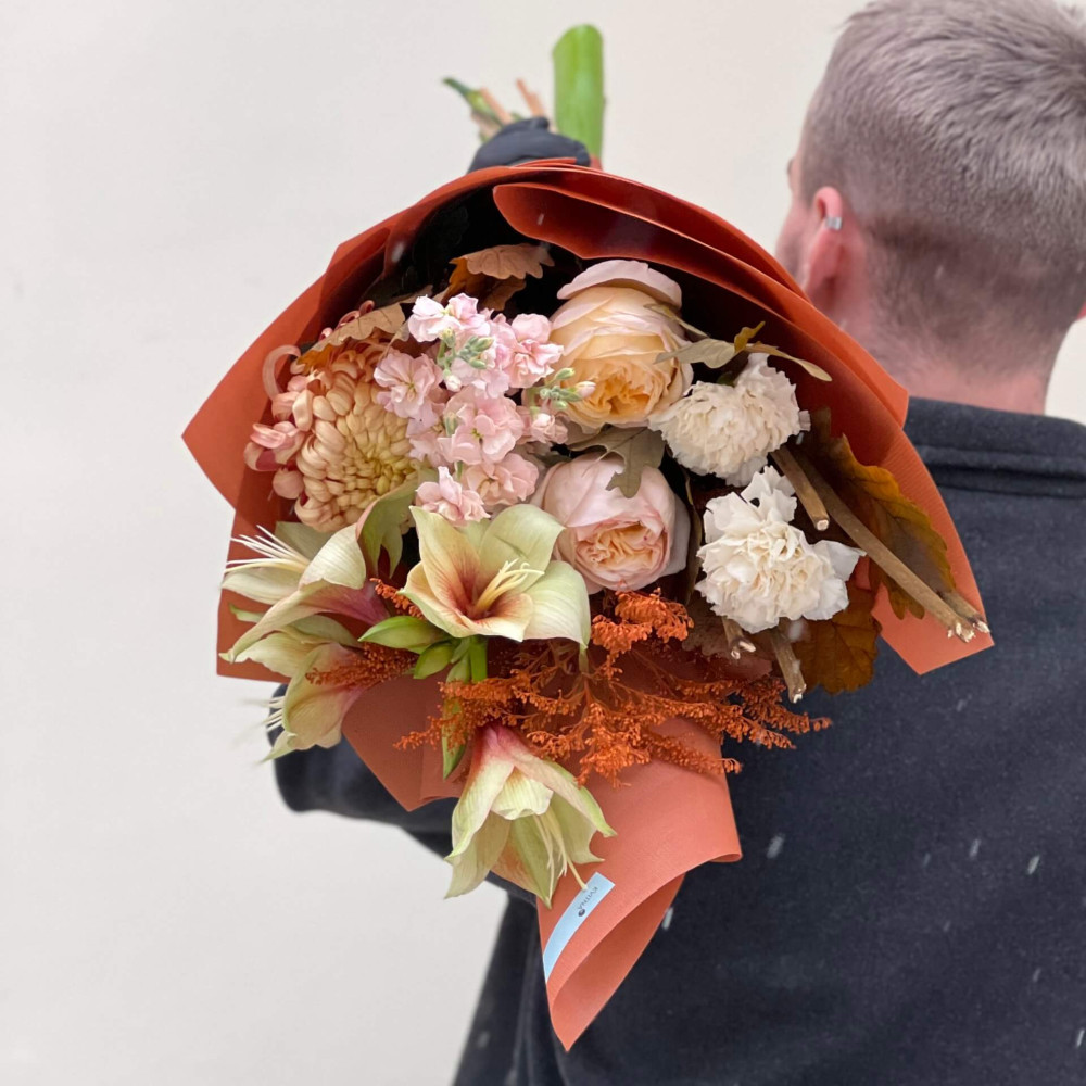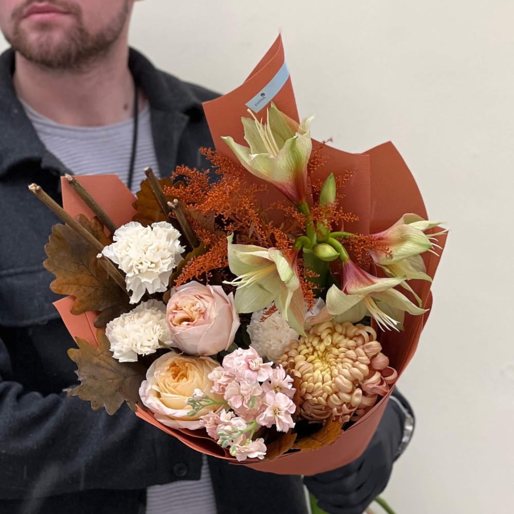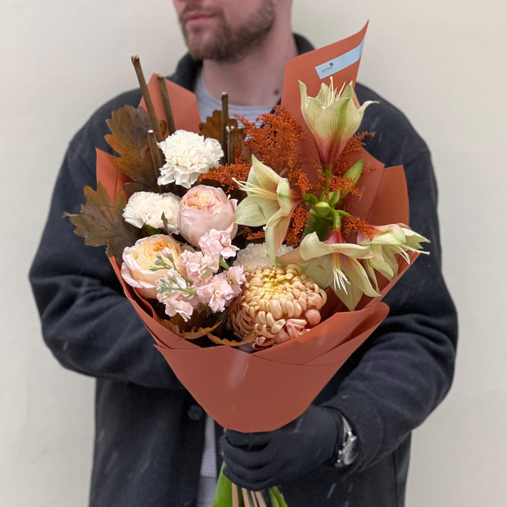 - Як замовити Букет у теплих відтінках із амарилісом «Карамельний листопад»? ❯