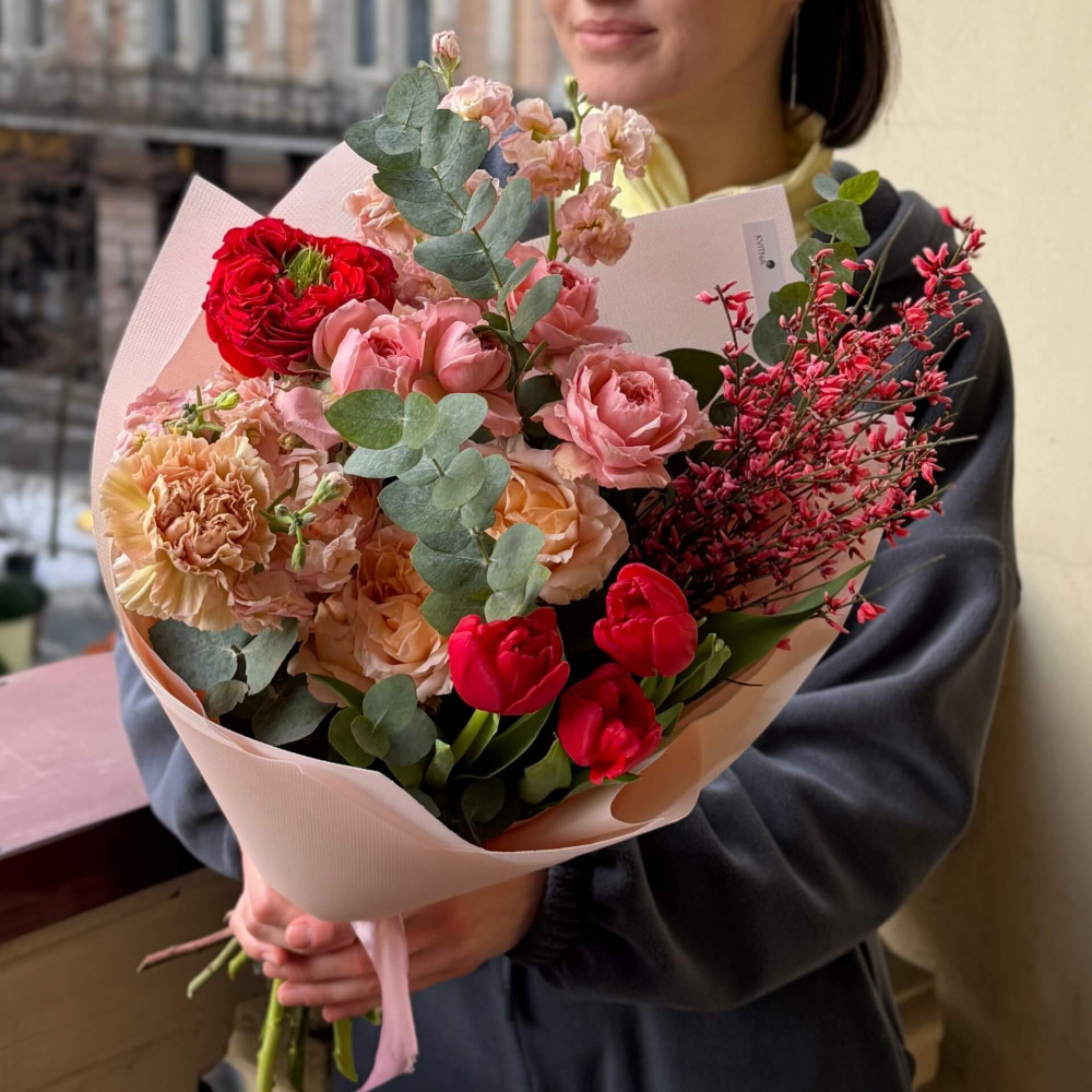 І це, до речі, зовсім не обов'язково плюси, це особливості, які потрібно розуміти. Тоді і вибір «де купити букет у Львові» зробити буде значно простіше.- Кожен букет Kvitna унікальний. Це означає, якщо Ви замовите у нас якийсь із букетів на сайті, то Ви не отримаєте точнісінько такий же. Деяких це бентежить, такі люди не хочуть «ризикувати», бажають «в точності, як на світлині». У «Квітна» кожен букет — це творчий пошук, це захоплення, злиття з квітами, образом одержувача і завданням. Так, ми можемо прийняти за вектор, зробити схожий букет, в тому ж стилі, кольоровій гамі, з тих самих квітів ... Але нам нудно робити за шаблоном. Адже букет, представлений на зображенні, робився для іншої людини, з іншого приводу, під інший настрій і натхнення. У Вас буде все по-іншому.