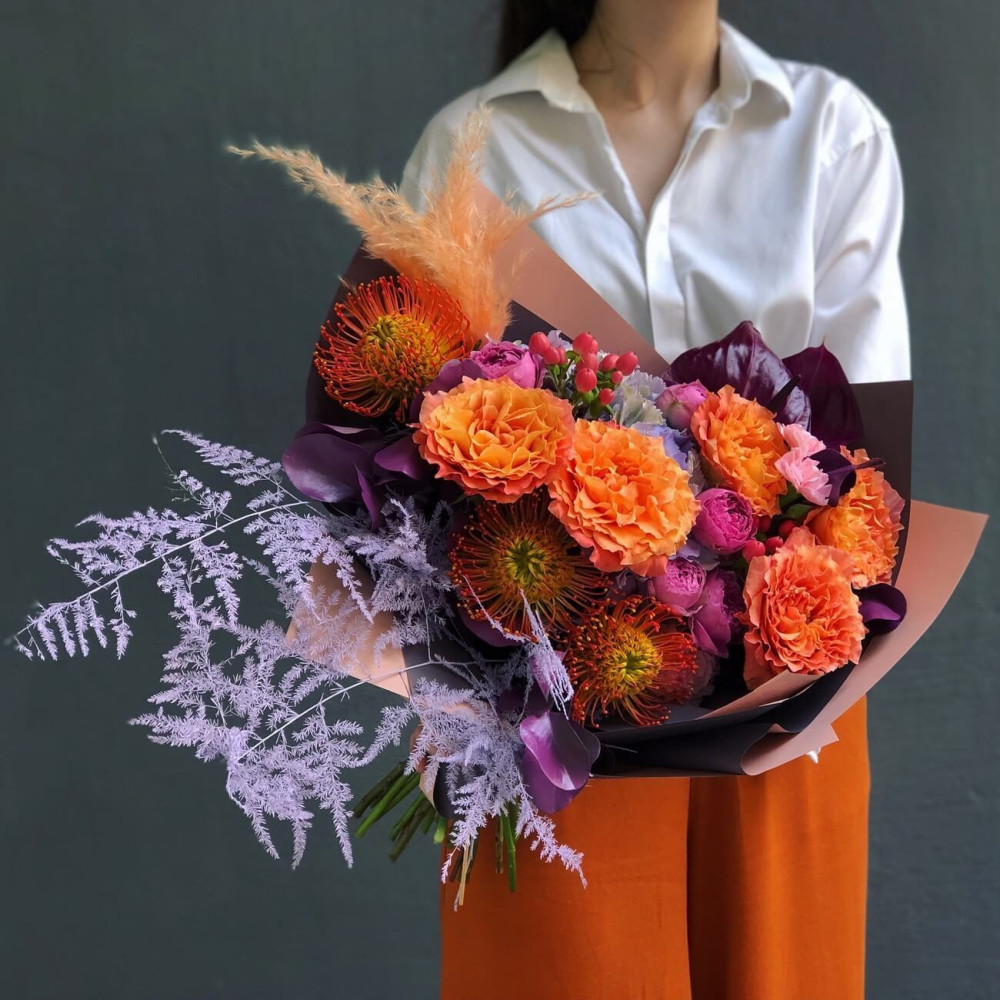 - Екзотичні квіти відмінної якості. Гарантують Вам унікальність букета і його довгостроковість. Тому наші снопики радують клієнтів кілька тижнів.