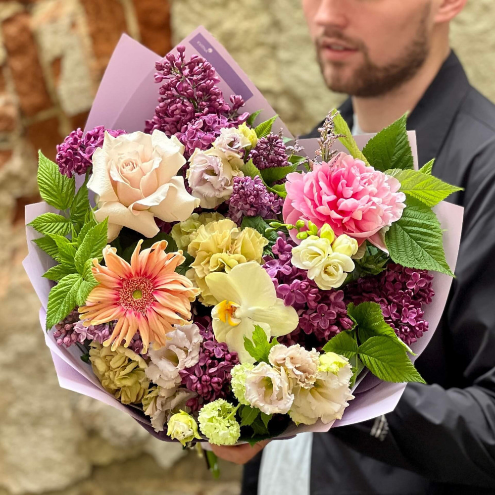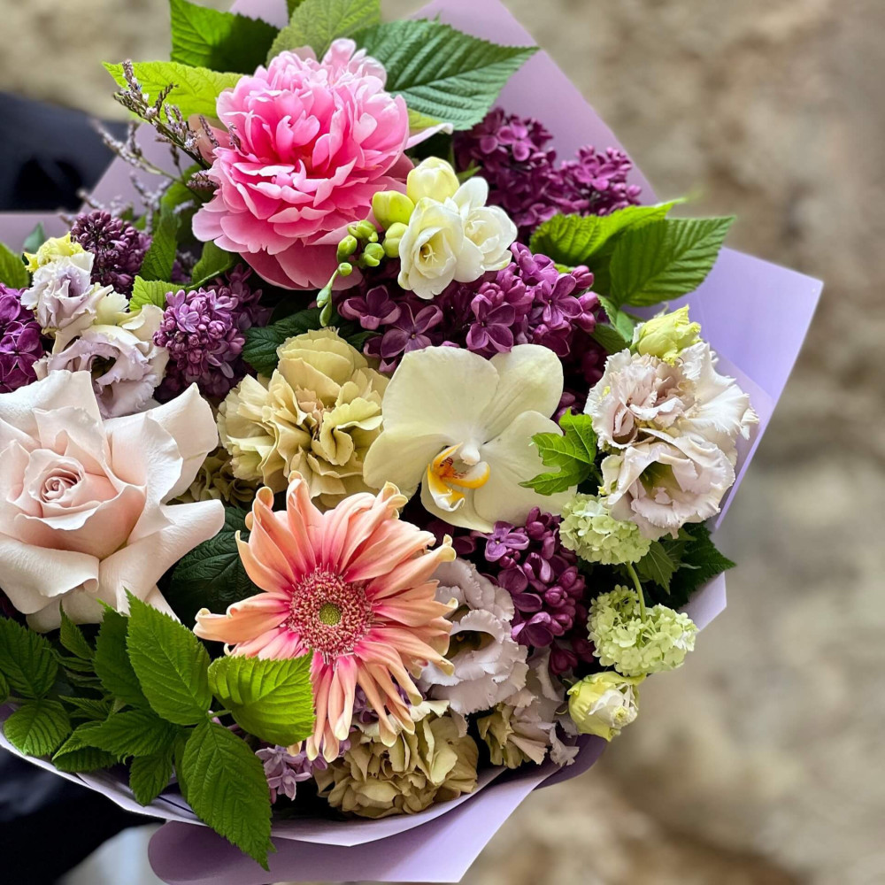 Квіти: Півонія, Гербера, Еустома, Бузок, Фаленопсис, Діантус