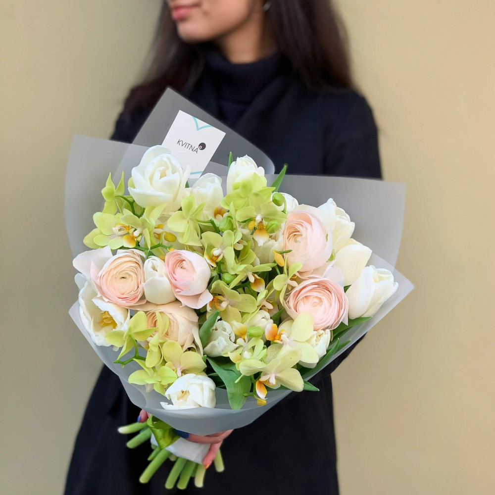 І це, до речі, зовсім не обов'язково плюси, це особливості, які потрібно розуміти. Тоді і вибір «де купити букет у Львові» зробити буде значно простіше.- Кожен букет Kvitna унікальний. Це означає, якщо Ви замовите у нас якийсь із букетів на сайті, то Ви не отримаєте точнісінько такий же. Деяких це бентежить, такі люди не хочуть «ризикувати», бажають «в точності, як на світлині». У «Квітна» кожен букет — це творчий пошук, це захоплення, злиття з квітами, образом одержувача і завданням. Так, ми можемо прийняти за вектор, зробити схожий букет, в тому ж стилі, кольоровій гамі, з тих самих квітів ... Але нам нудно робити за шаблоном. Адже букет, представлений на зображенні, робився для іншої людини, з іншого приводу, під інший настрій і натхнення. У Вас буде все по-іншому.