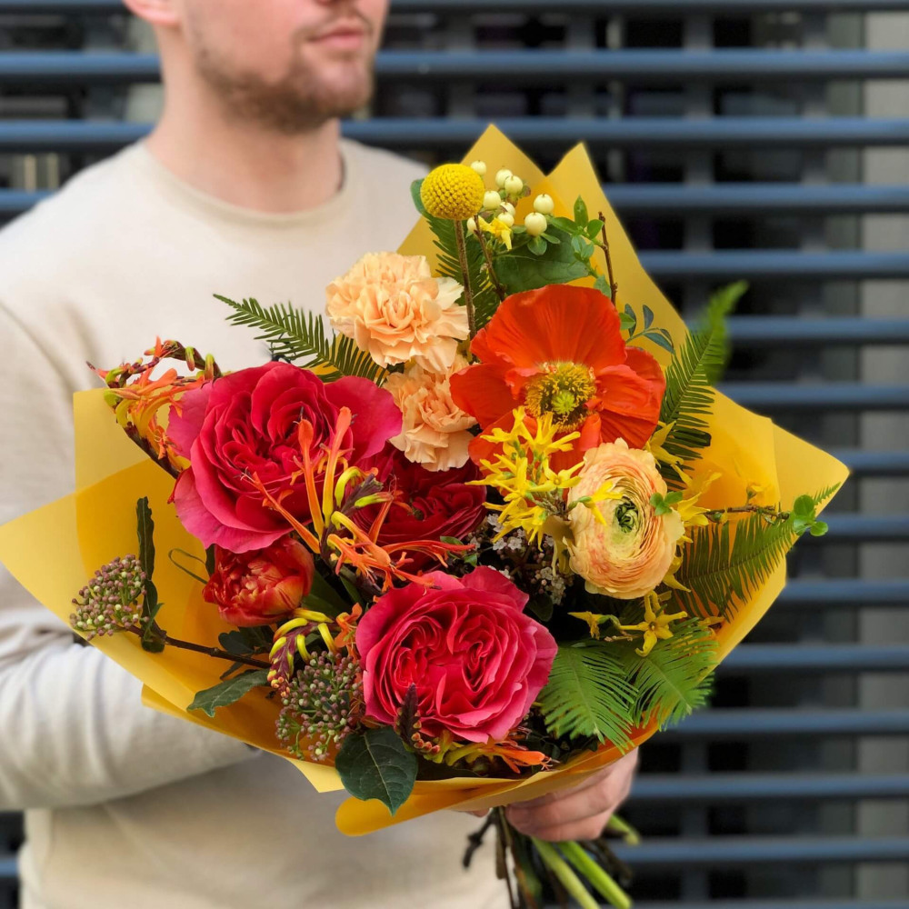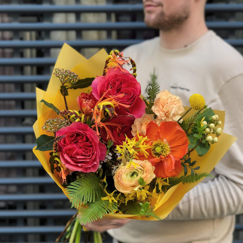Квіти: Троянда піоновидна, Папавер (Мак), Діантус, Ранункулюс, Тюльпан, Краспедія, Хіперикум