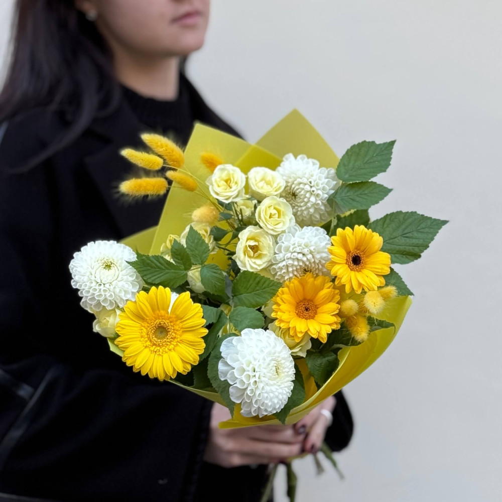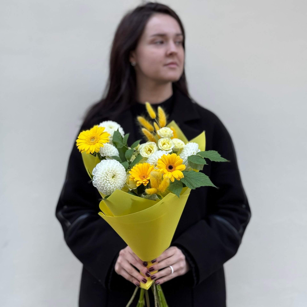 - Як замовити Букет з герберами та жоржинами «Яскраве сонечко»? ❯