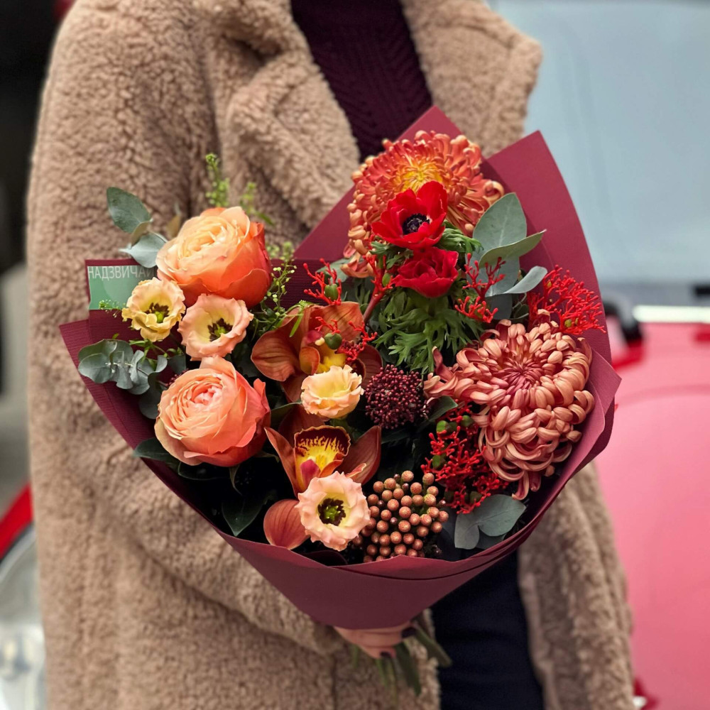 Залежно від сезонності і наявності квітів ми залишаємо за собою право змінювати склад букета без повідомлення замовника, зберігаючи при цьому авторський стиль, колірне рішення, концепцію букета. У разі, якщо необхідна заміна базової квітки, заміна відбувається з узгодженням із замовником. Якщо для Вас критично важлива присутність в складі певної квіточки – обов'язково зв'яжіться з нами та повідомте про це.