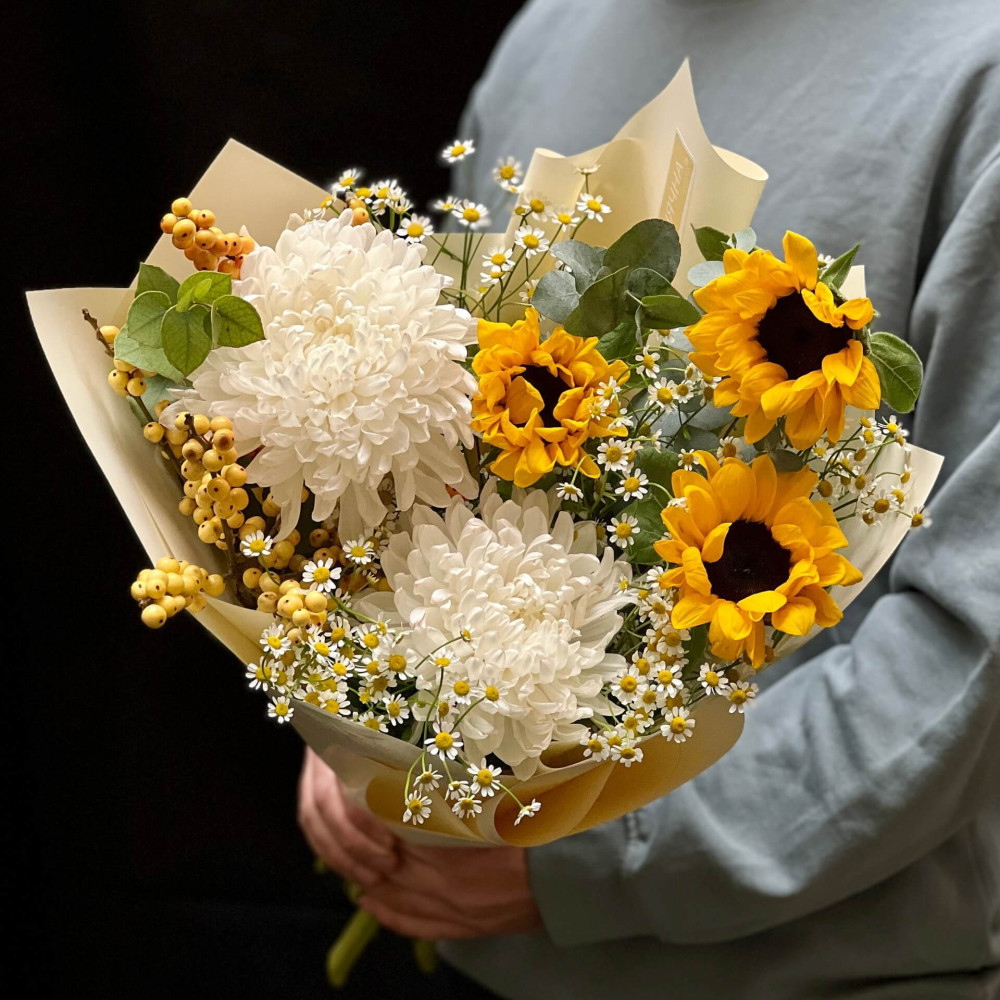Квіти: Хризантема, Соняшник, Танацетум, Ілекс, Евкаліпт