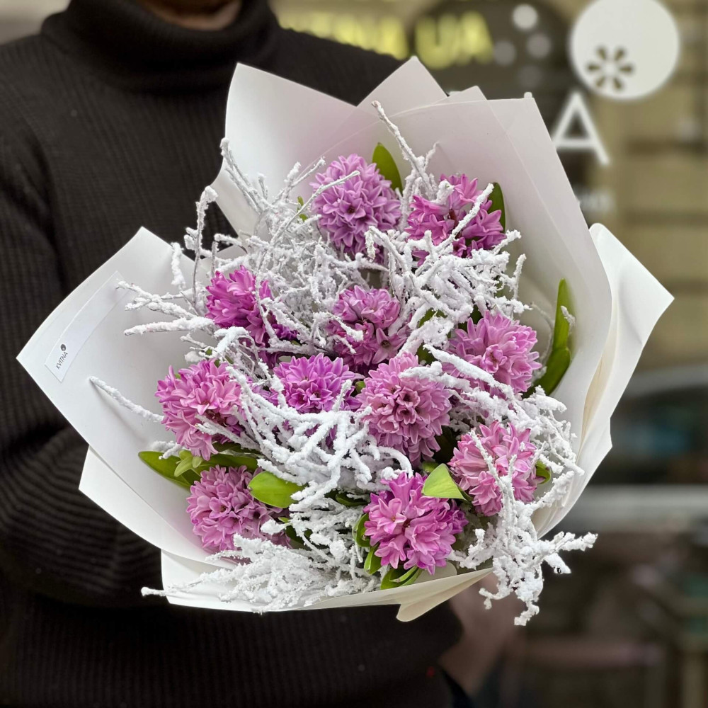 - Як замовити Бузковий букет із 11 гіацинтів «Засніжений ранок»? ❯