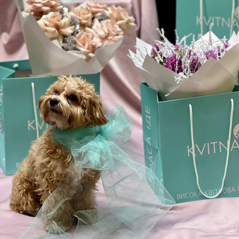 - Букет помістимо у пакет. У разі негоди додатково запакуємо замовлення в термоплівку для захисту від погодних умов (захист від дощу, снігу, морозу).