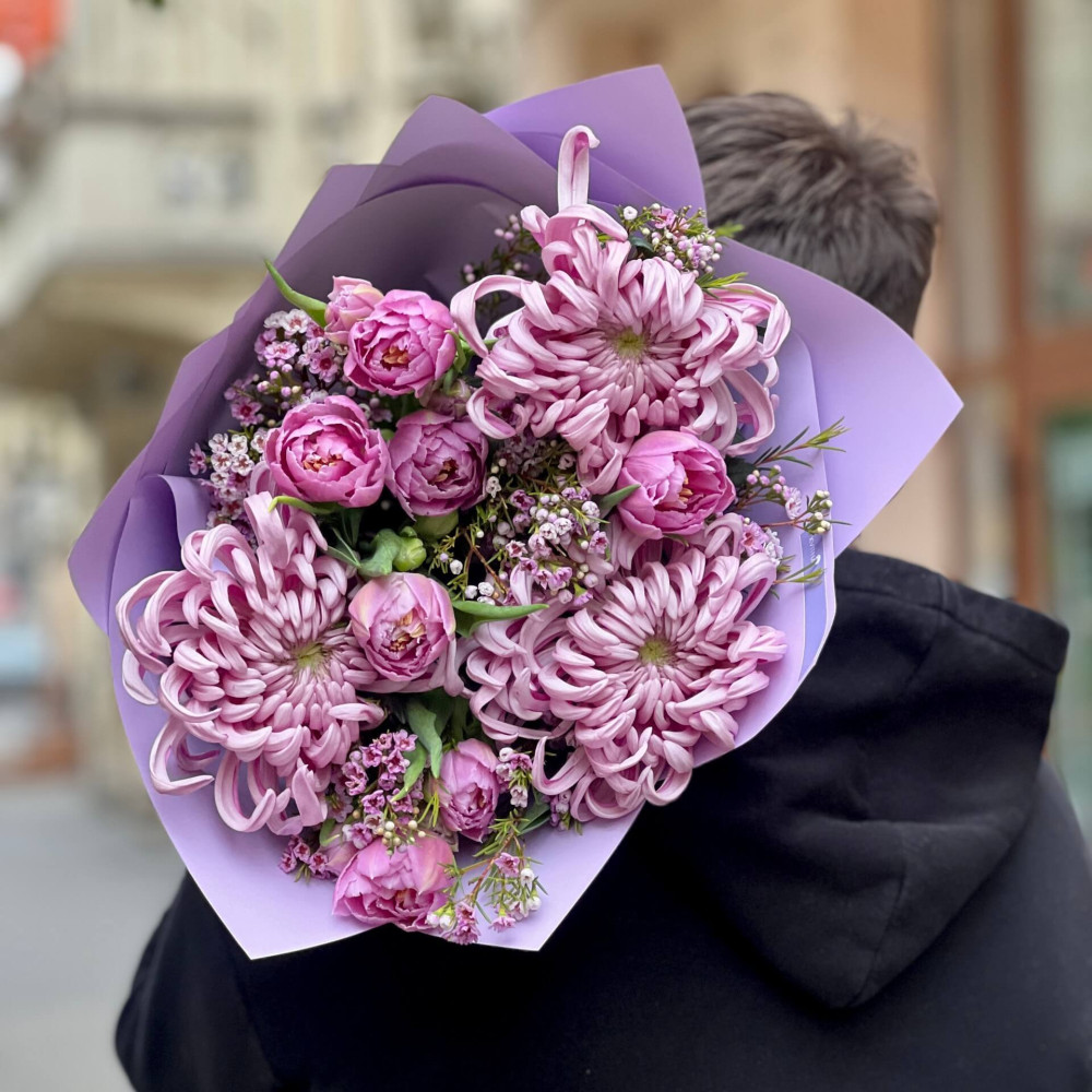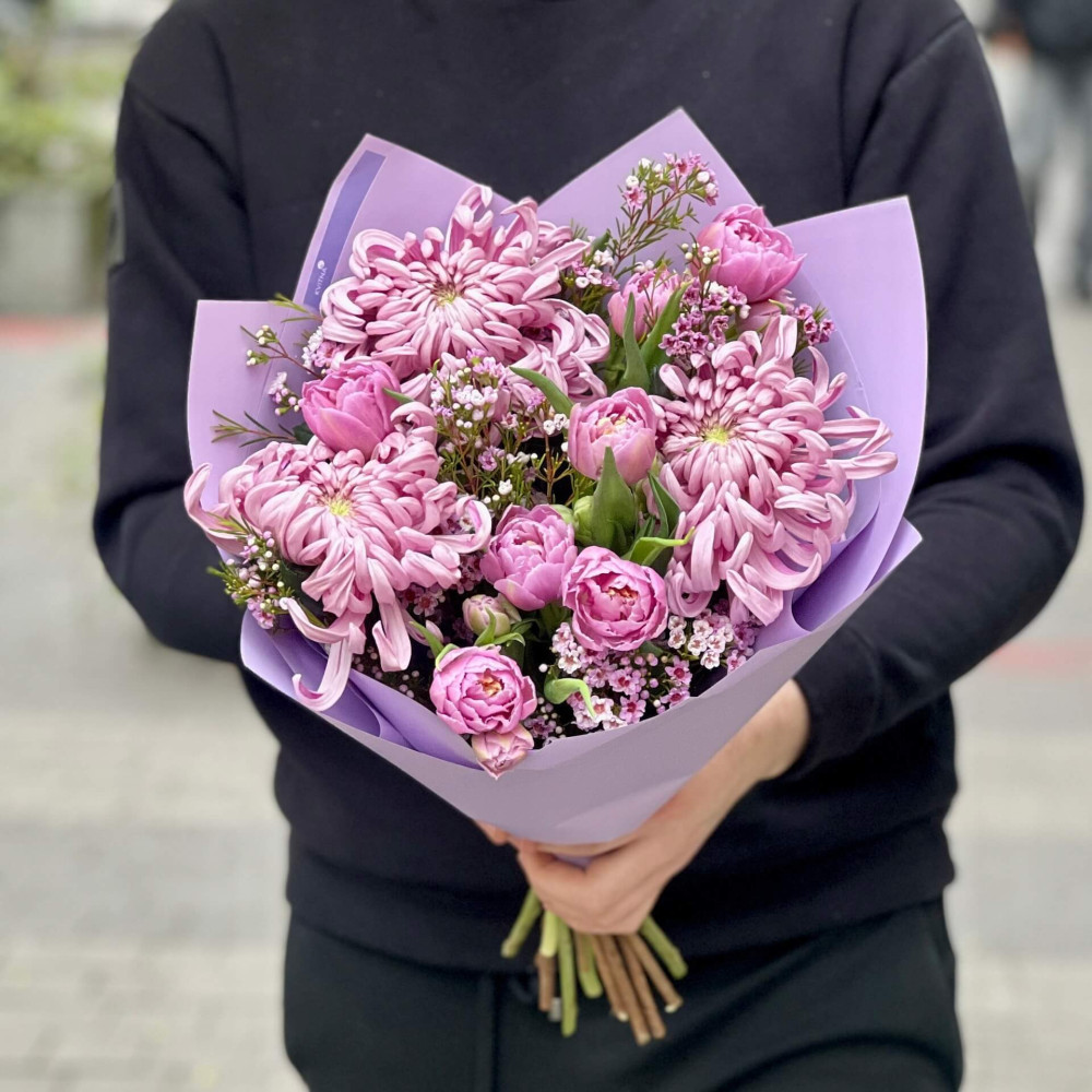 - Як замовити Бузковий букет з хризантемою Vienna «Загадковий аметист»? ❯