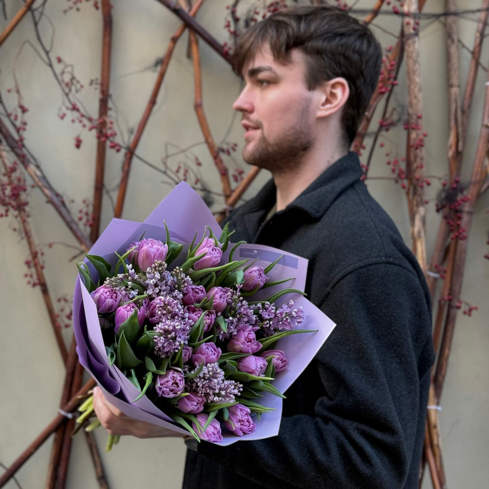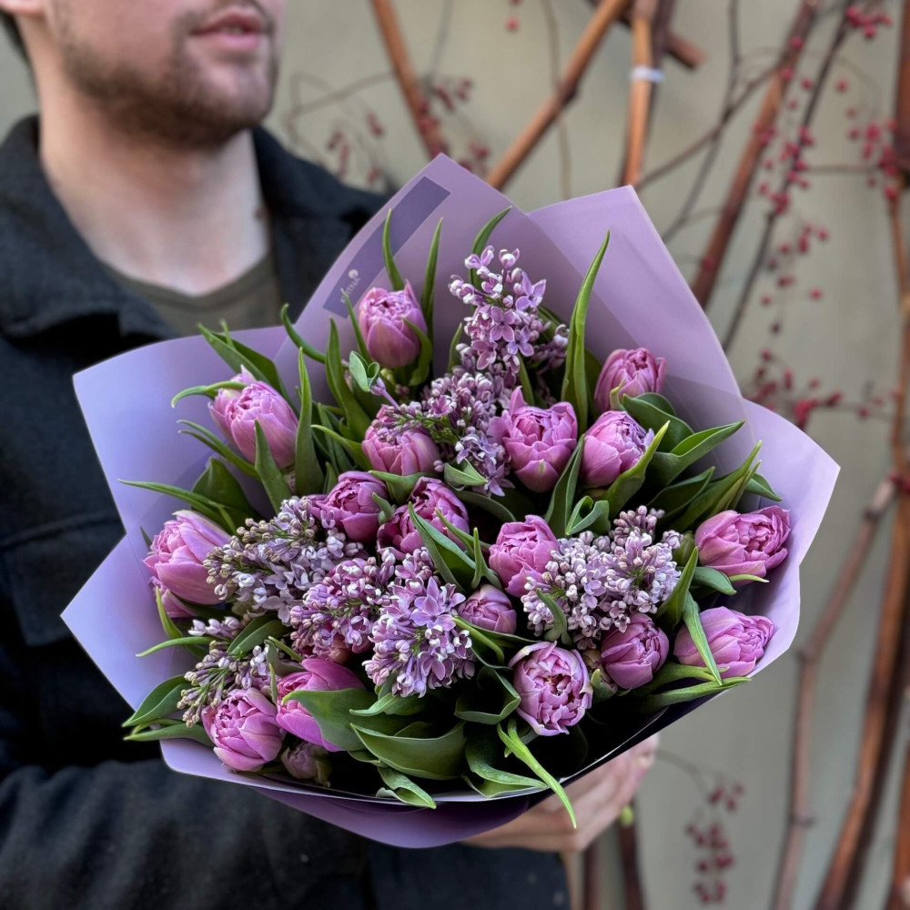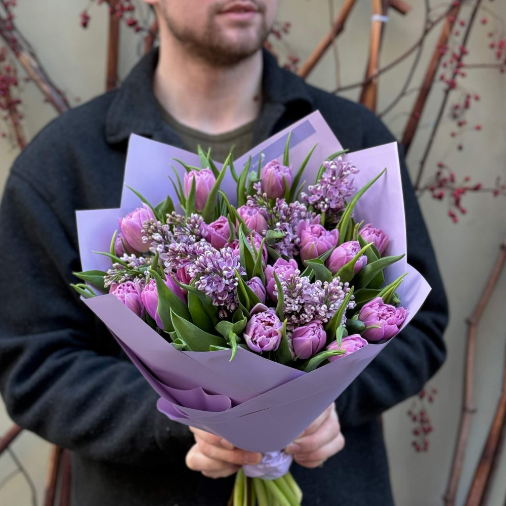 - Як замовити Бузковий букет з тюльпанами «Весняний настрій!»? ❯