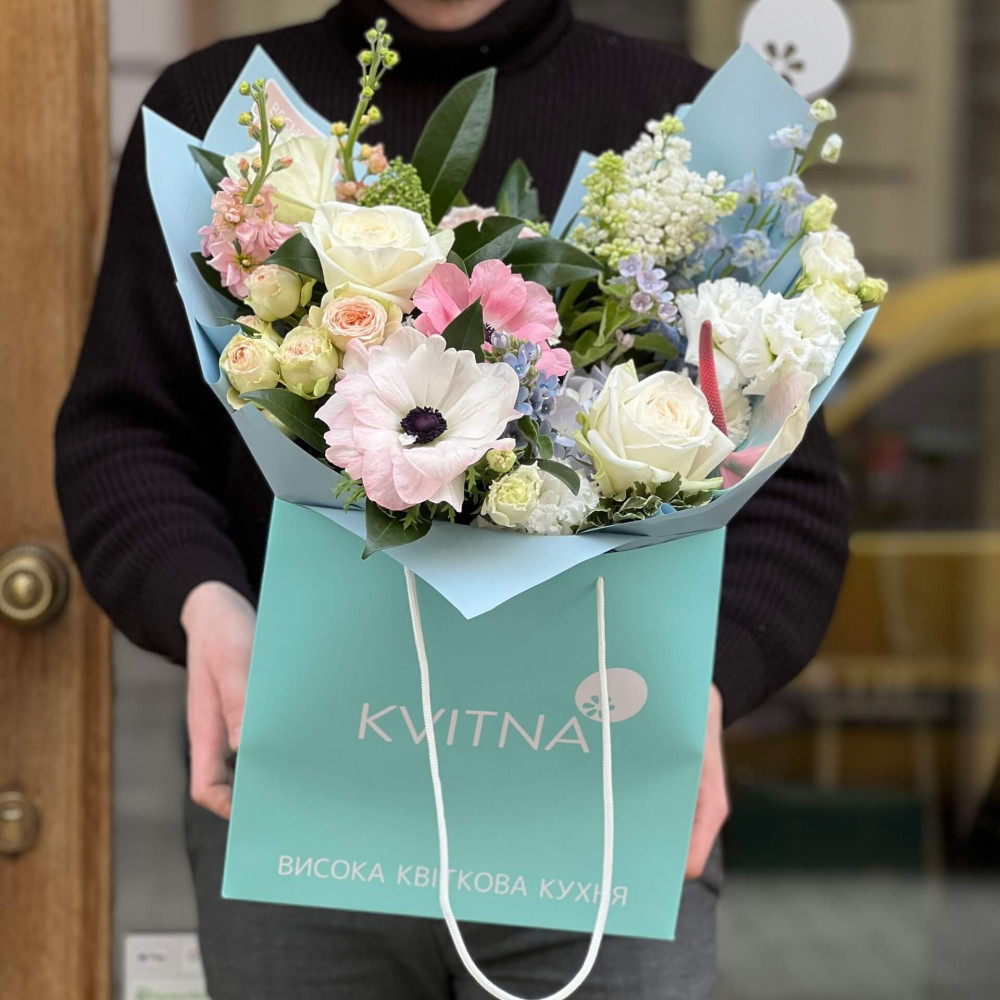 І це, до речі, зовсім не обов'язково плюси, це особливості, які потрібно розуміти. Тоді і вибір «де купити букет у Львові» зробити буде значно простіше.- Кожен букет Kvitna унікальний. Це означає, якщо Ви замовите у нас якийсь із букетів на сайті, то Ви не отримаєте точнісінько такий же. Деяких це бентежить, такі люди не хочуть «ризикувати», бажають «в точності, як на світлині». У «Квітна» кожен букет — це творчий пошук, це захоплення, злиття з квітами, образом одержувача і завданням. Так, ми можемо прийняти за вектор, зробити схожий букет, в тому ж стилі, кольоровій гамі, з тих самих квітів ... Але нам нудно робити за шаблоном. Адже букет, представлений на зображенні, робився для іншої людини, з іншого приводу, під інший настрій і натхнення. У Вас буде все по-іншому.