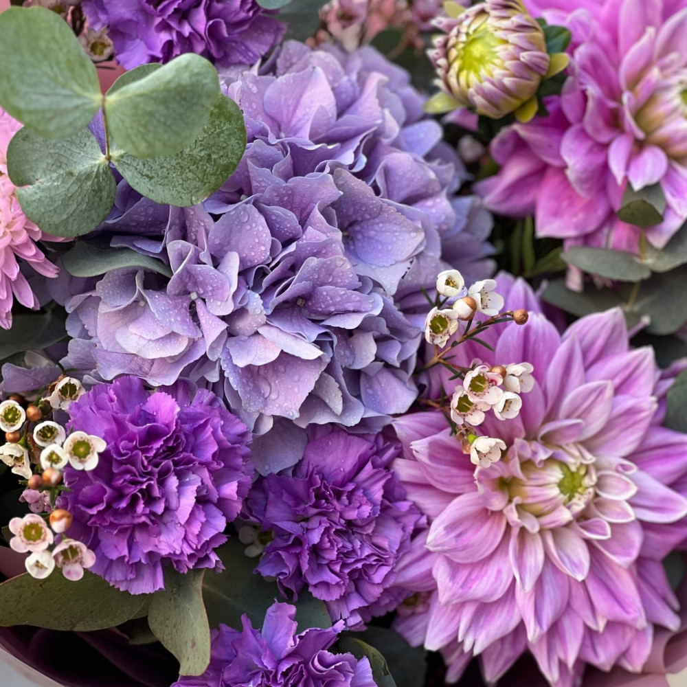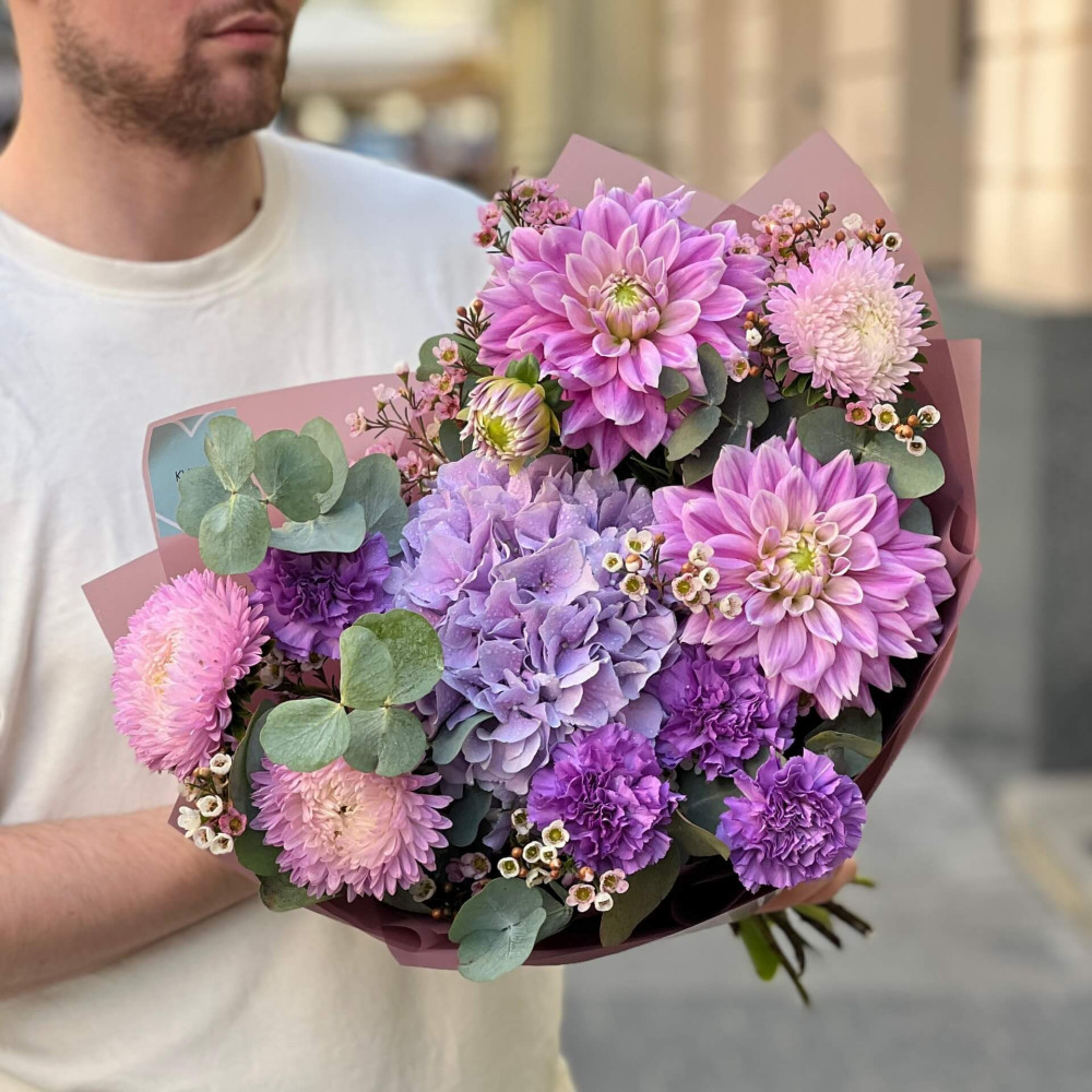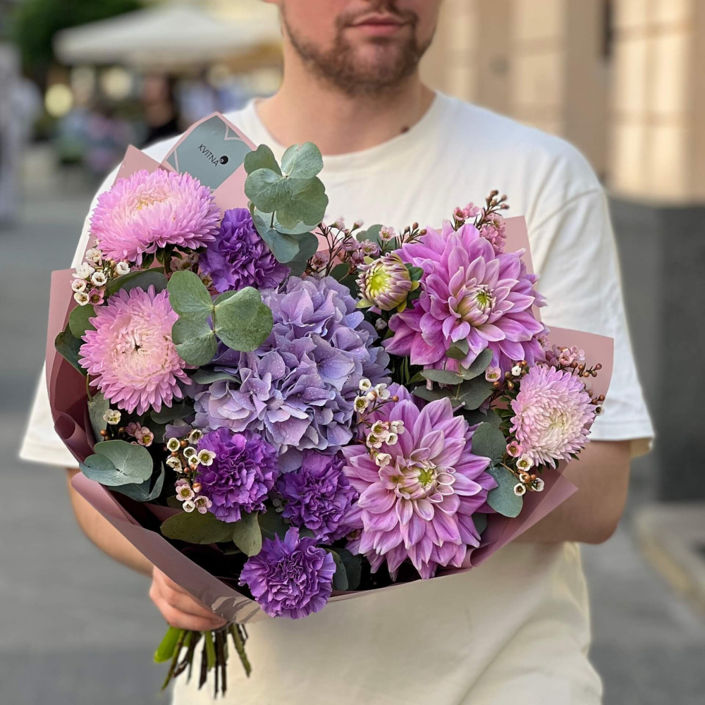 - Як замовити Чарівний букет з гортензією та жоржинами «Відтінки фіолетового»? ❯