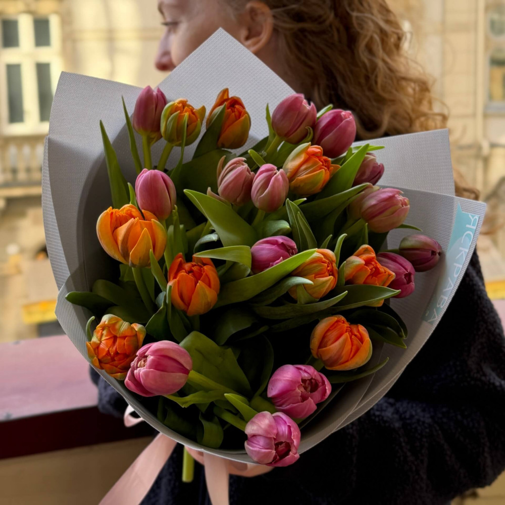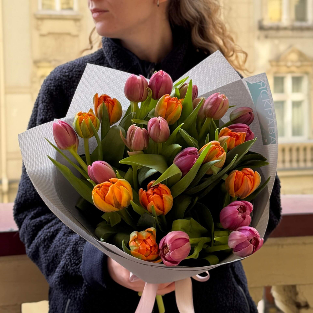 Чудовий букет із піоновидних тюльпанів «Розкидані намистинки»