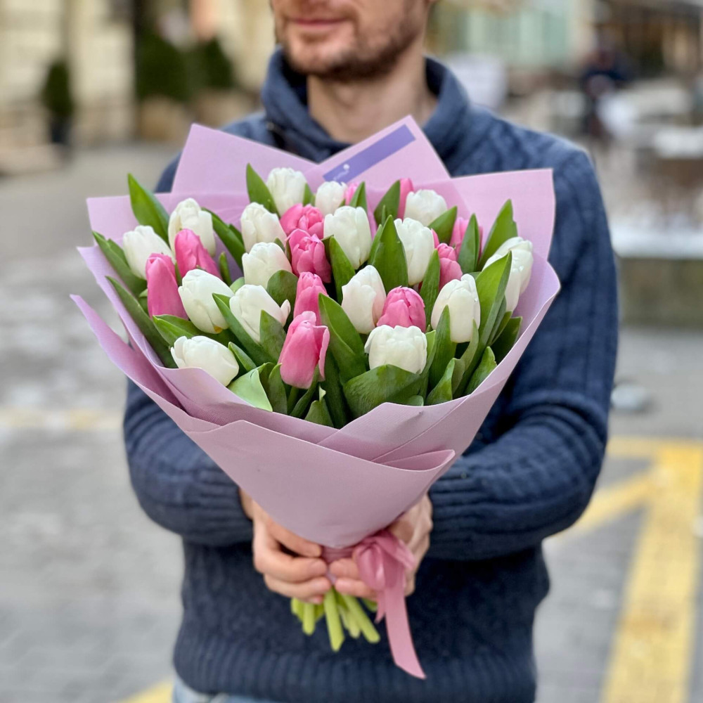 - Як замовити Двоколірний букет з тюльпанів «Весняний дует»? ❯