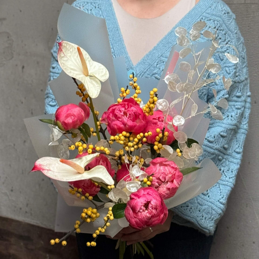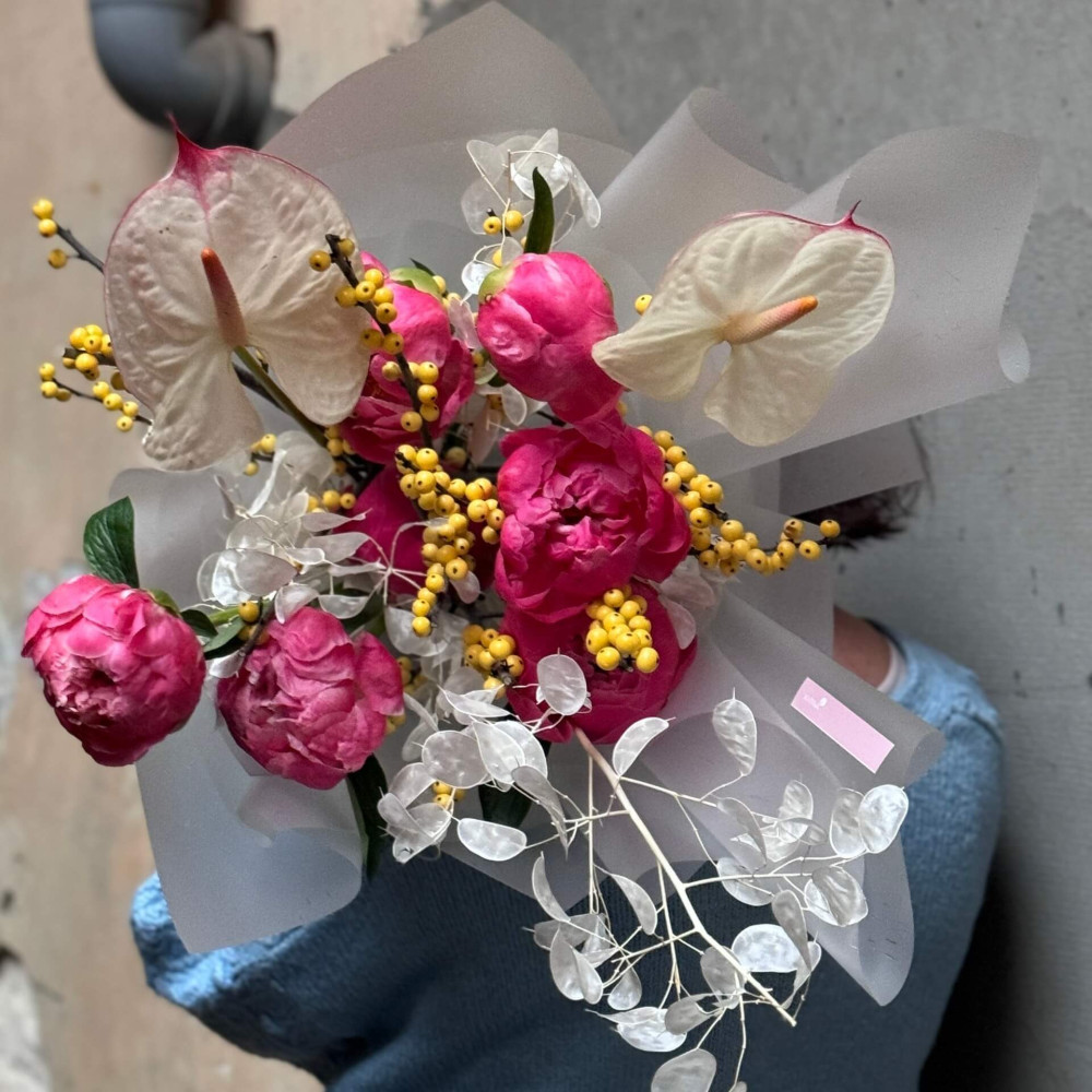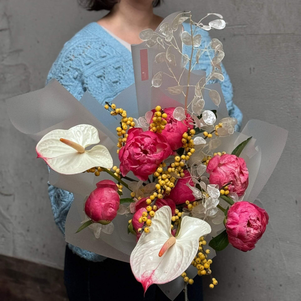Квіти: Півонія, Лунарія, Антуріум, Ілекс