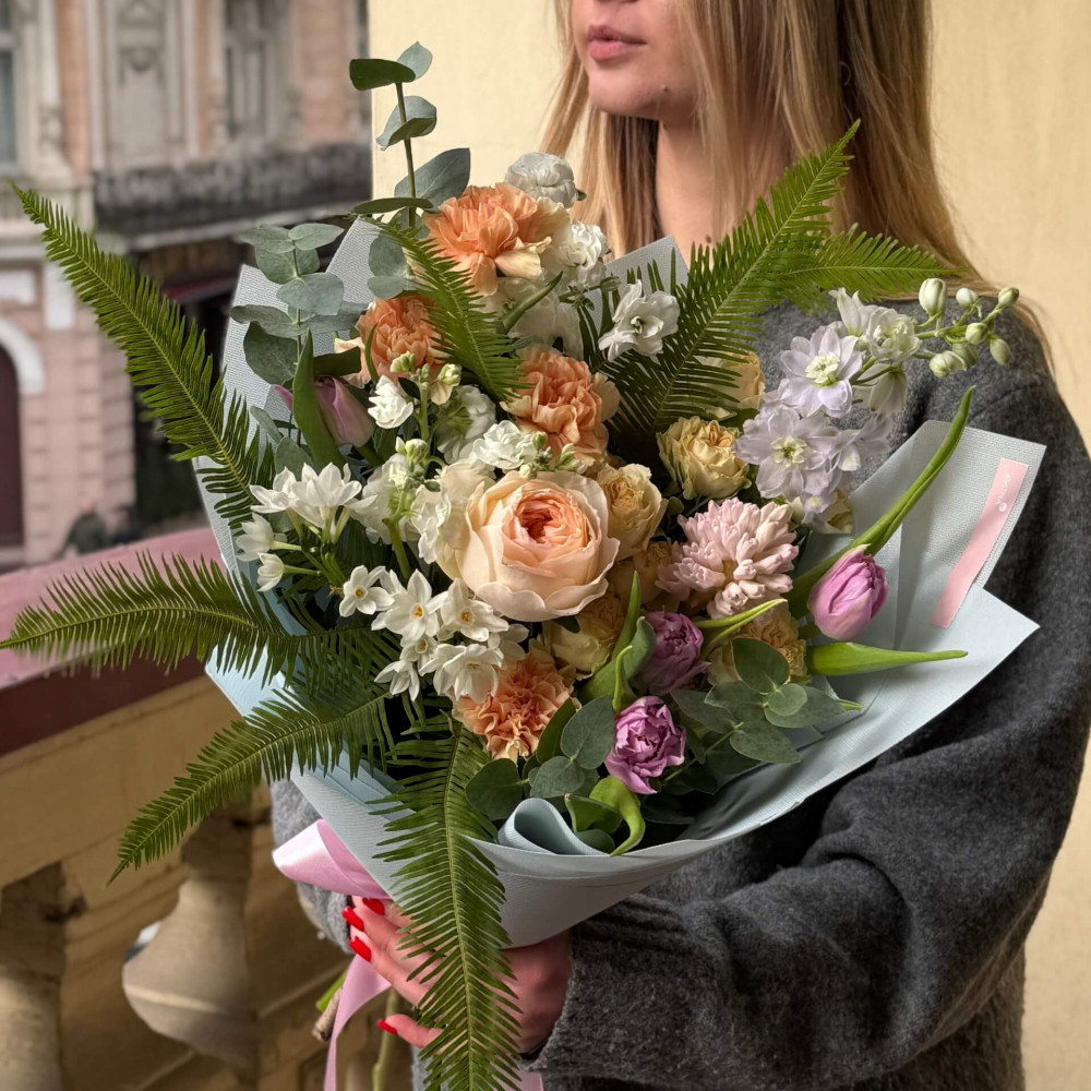 І це, до речі, зовсім не обов'язково плюси, це особливості, які потрібно розуміти. Тоді і вибір «де купити букет у Львові» зробити буде значно простіше.- Кожен букет Kvitna унікальний. Це означає, якщо Ви замовите у нас якийсь із букетів на сайті, то Ви не отримаєте точнісінько такий же. Деяких це бентежить, такі люди не хочуть «ризикувати», бажають «в точності, як на світлині». У «Квітна» кожен букет — це творчий пошук, це захоплення, злиття з квітами, образом одержувача і завданням. Так, ми можемо прийняти за вектор, зробити схожий букет, в тому ж стилі, кольоровій гамі, з тих самих квітів ... Але нам нудно робити за шаблоном. Адже букет, представлений на зображенні, робився для іншої людини, з іншого приводу, під інший настрій і натхнення. У Вас буде все по-іншому.