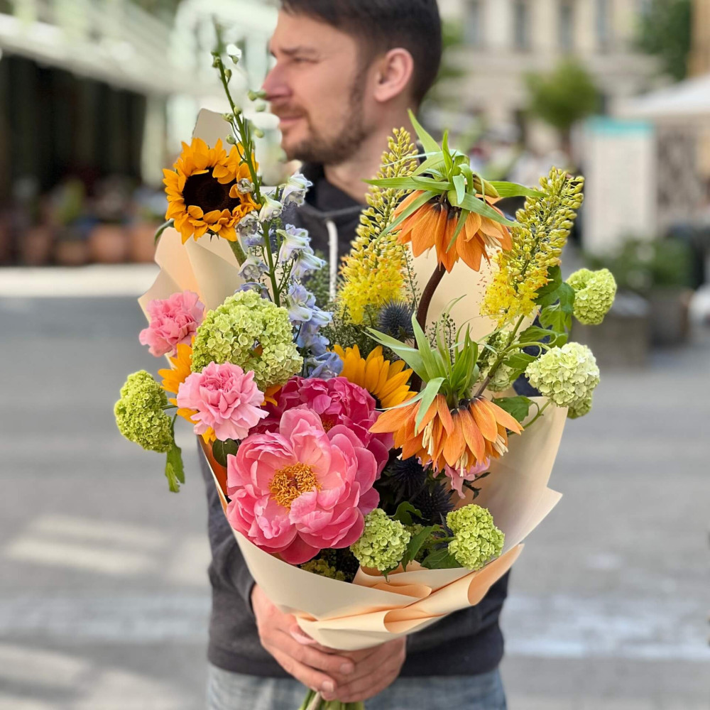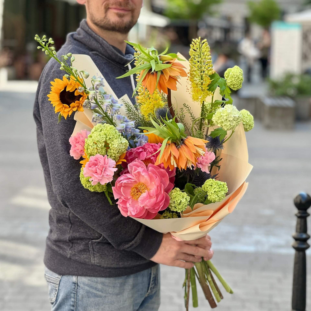 Квіти: Фрітілярія, Еремурус, Півонія, Соняшник, Діантус (Гвоздика), Ерінгіум, Тласпі, Вібурнум