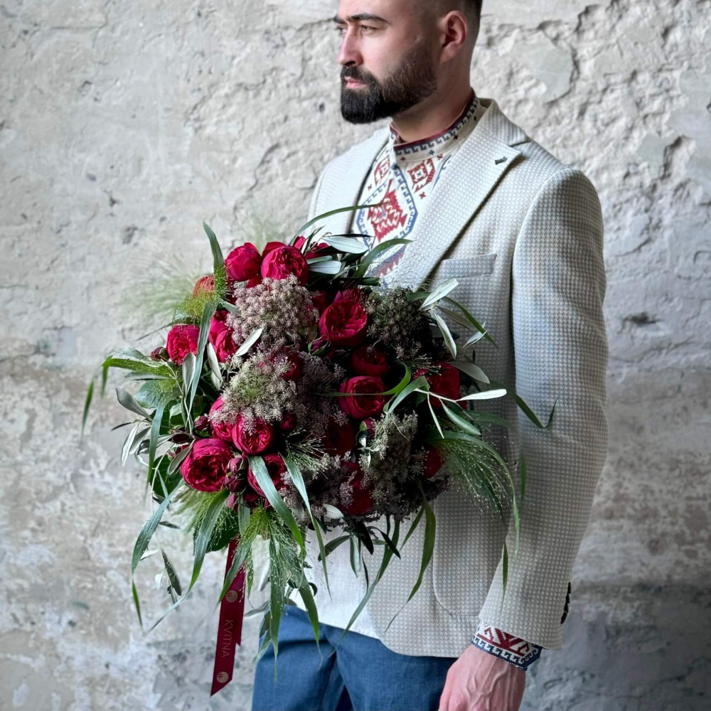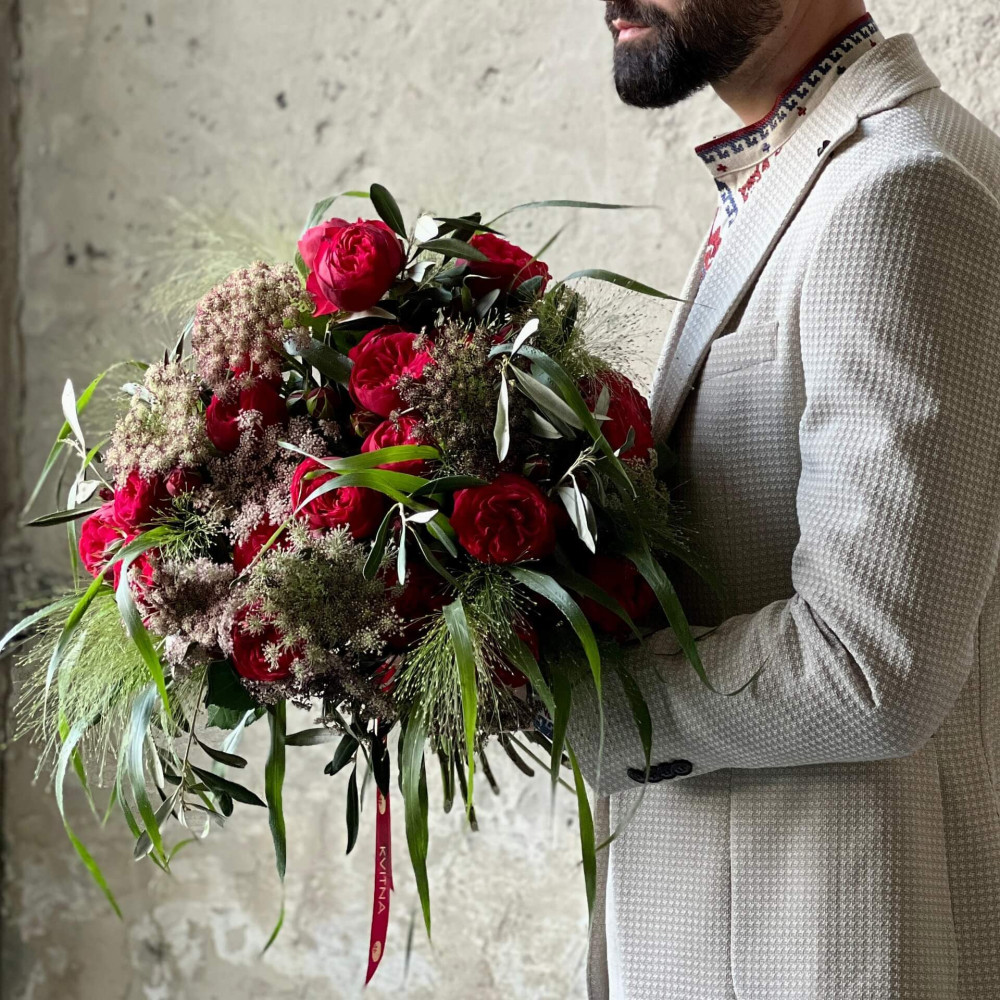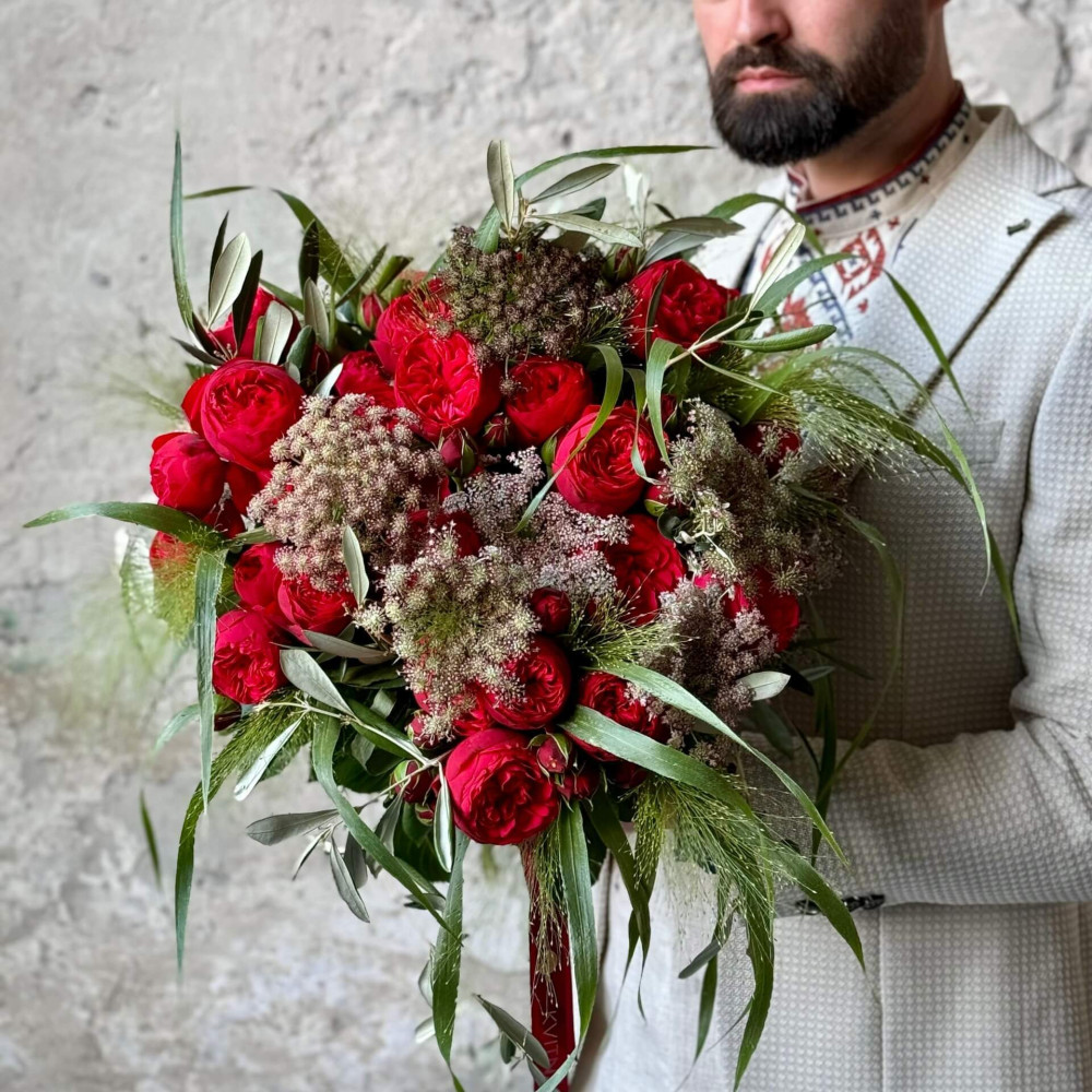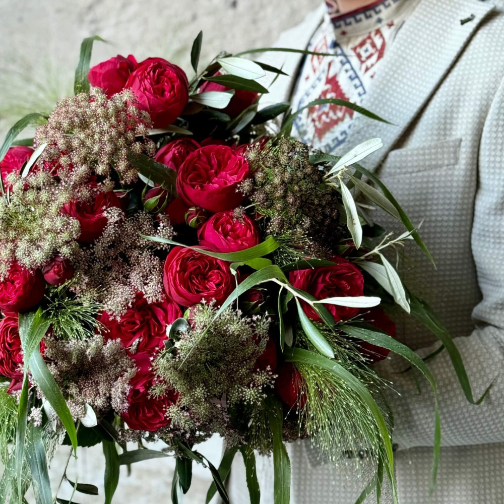 Квіти: Троянда піоновидна кущова, Аммі, Панікум, Оливка
